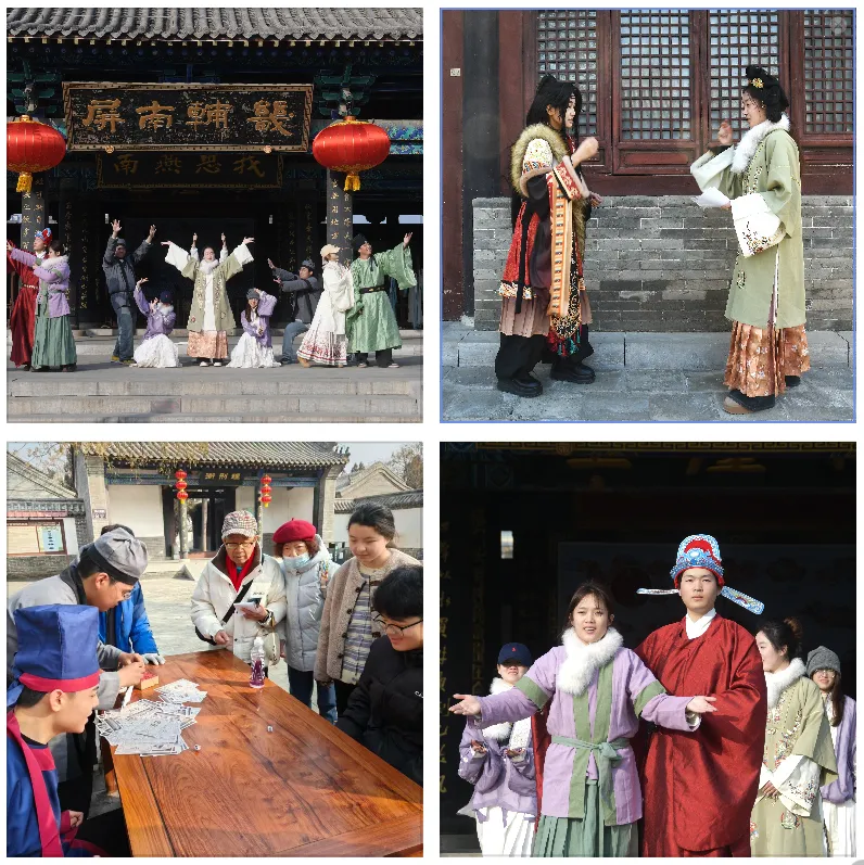 本次演出主要在河间府署景区内开展,演员们参与《知府开衙》《笑审奇案》《嫡女翻身记》等实景情景剧演出,同时担任书生、秀才、衙役等互动NPC,与游客开展对诗、投壶、闯关打卡等沉浸式体验活动,学生们用青春活力点亮了景区的新春氛围。