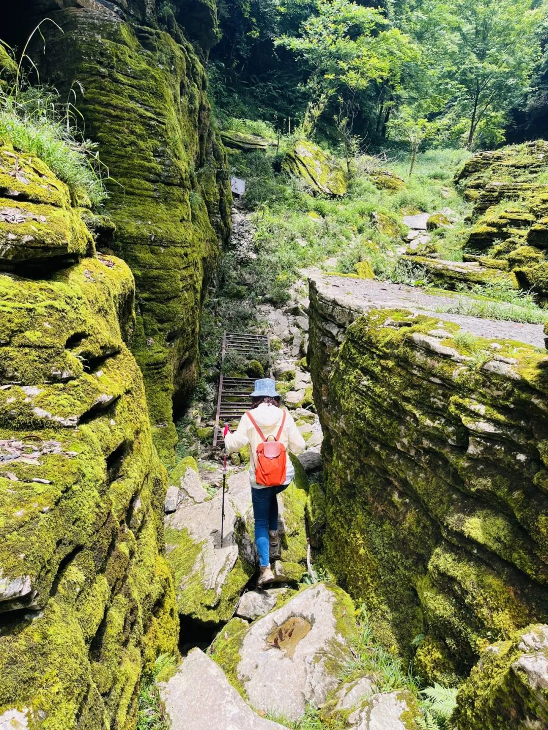 今日重头戏--清江古河床,探索利川最美徒步线,一级一步循着古人的脚步,踏出的是轮回和岁月。接着便来到今天的徒步精华--古河床巨石阵,途遇独家寨,行走于巨石上,脚踩亿年前的巨石褶皱,自然的鬼斧神工。再接连穿过三洞连两天坑的奇妙地貌景观,感受河床曾经的浩荡;最后装备好我们为您提供的照明设备穿过大龙门,过一场火车过山洞的瘾~之后映入眼帘的便是电影《聂隐娘》取景点之一--峡谷草坪,林岫叠翠,草木葱笼,牛羊满地,是时候来张最美时刻了!预备好表情和大长腿,面对镜头吧。