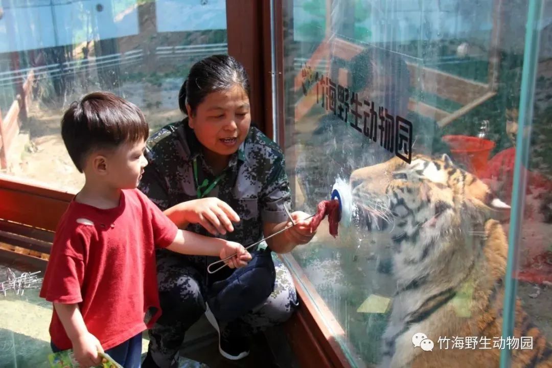 景区有122只东北虎,是国内唯一一家同时汇聚南北两大血统的东北虎散养和繁育基地。身边一群散放东北虎,你可以透过玻璃投食孔给老虎喂食。