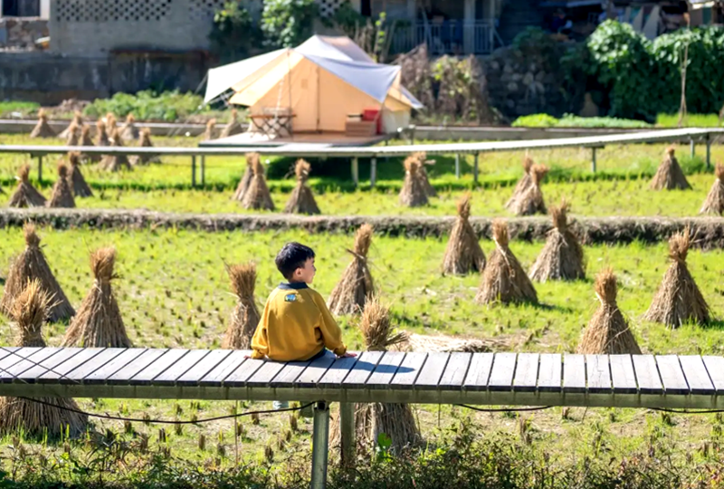 参观结束驱车前往美丽的田园风光【渔湾村】。往日里的山沟沟,现在已变成远近闻名的网红打卡地,蓝天白云下民居民宅错落有致,青石小路蜿蜒伸展,稻田里建有小火车轨道。站在渔湾村田野里,远离都市,放松心灵,静静的享受着惬意的田园风光。