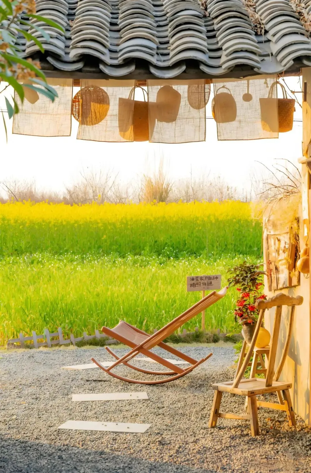 上午在油菜花田拍照,打卡木质阁楼;中午吃农家菜;下午体验非遗手工,在茶馆喝茶看风景;傍晚看夕阳洒在稻田上。