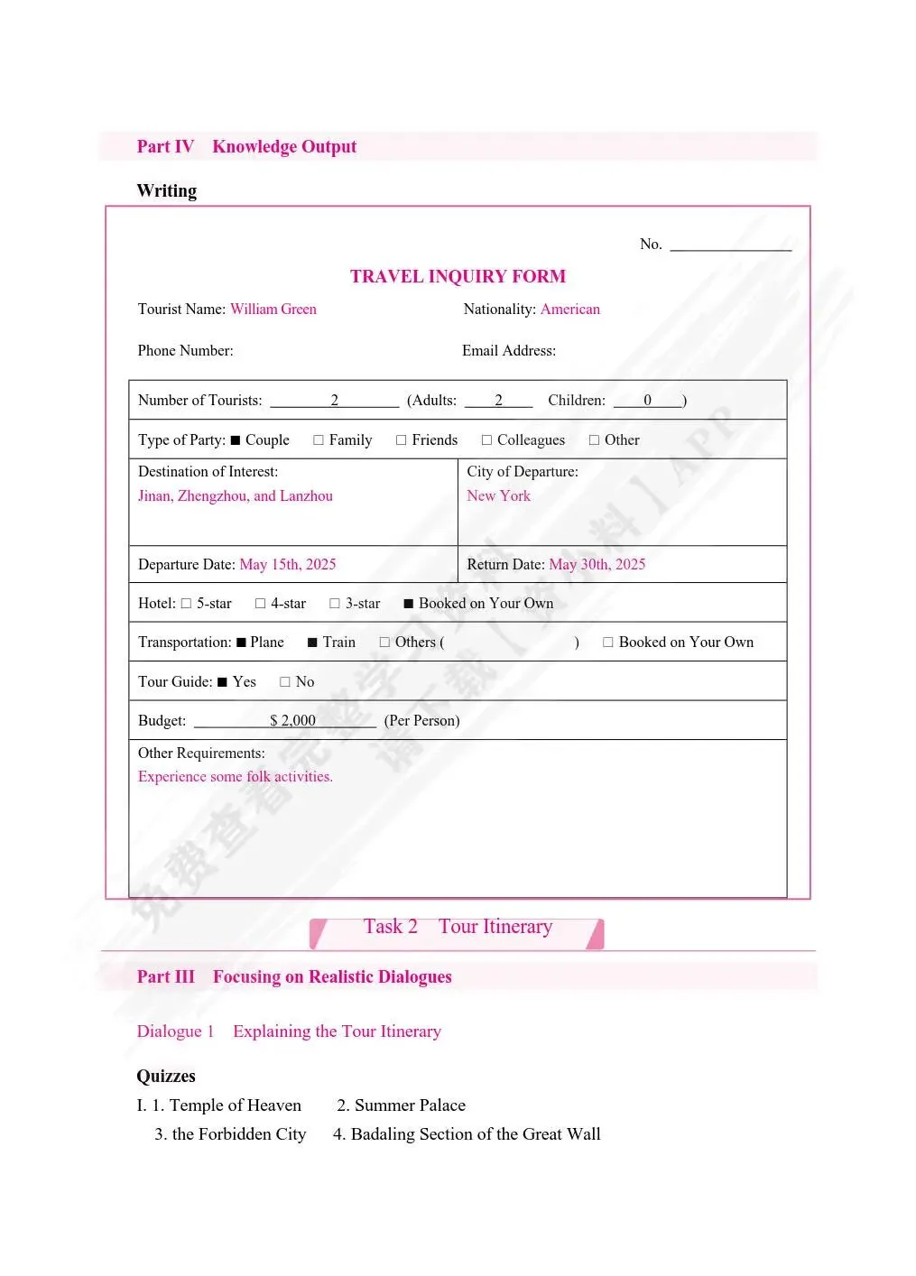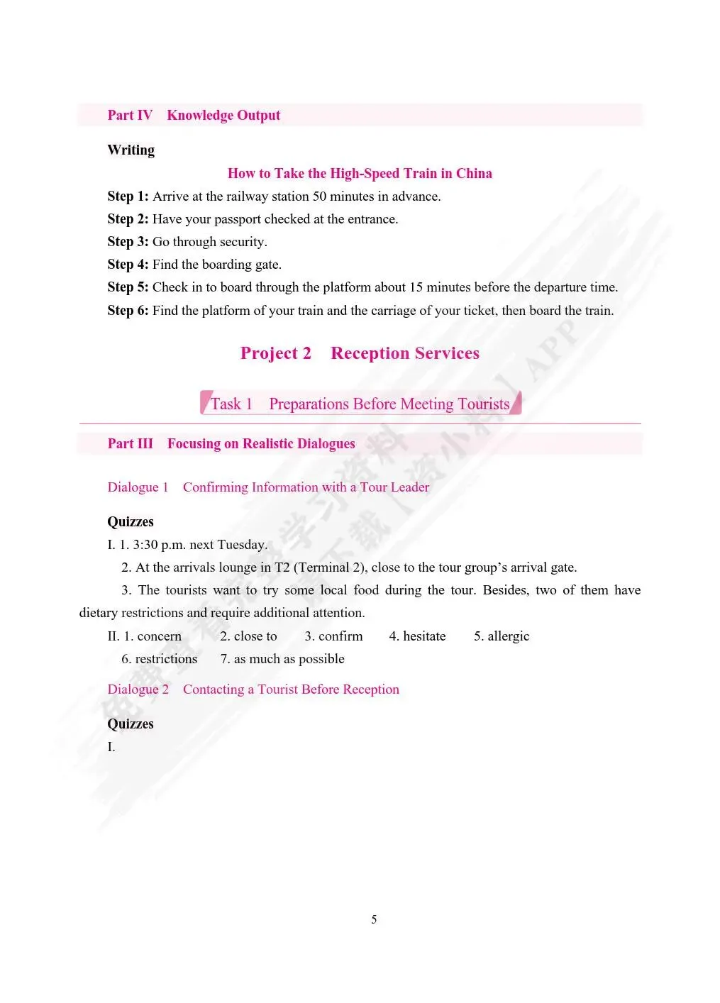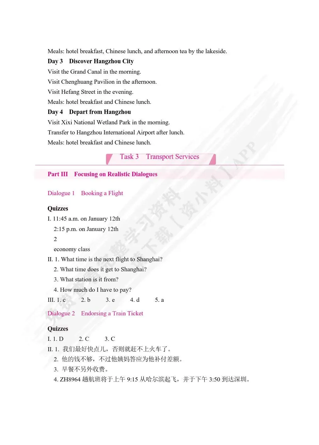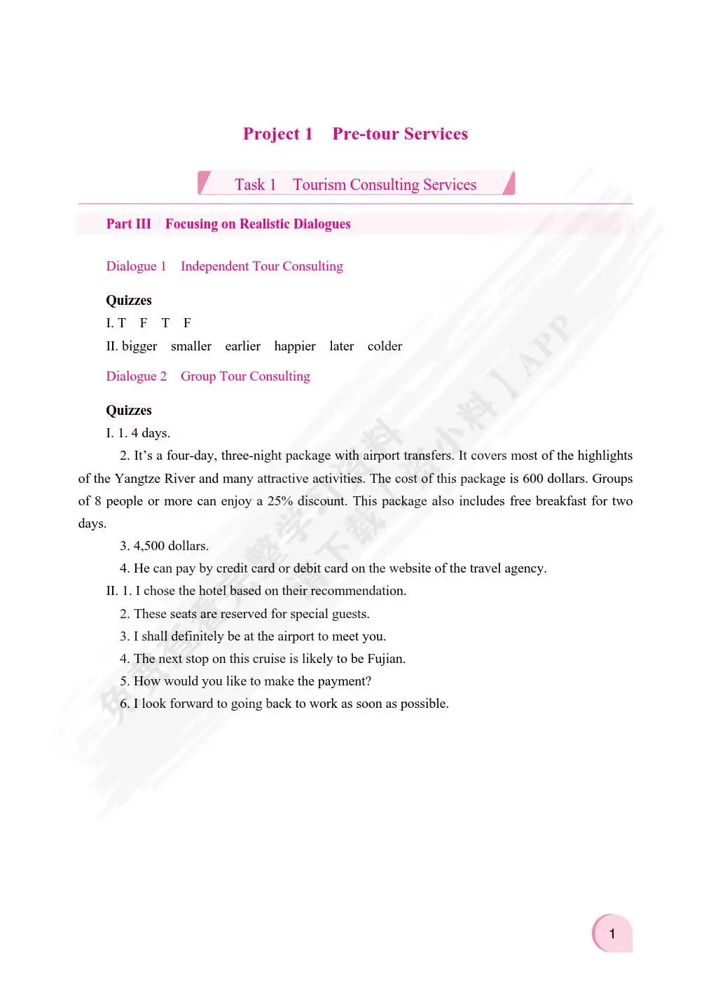 旅游英语(双色)(含微课) 苗巧英 课后习题答案解析