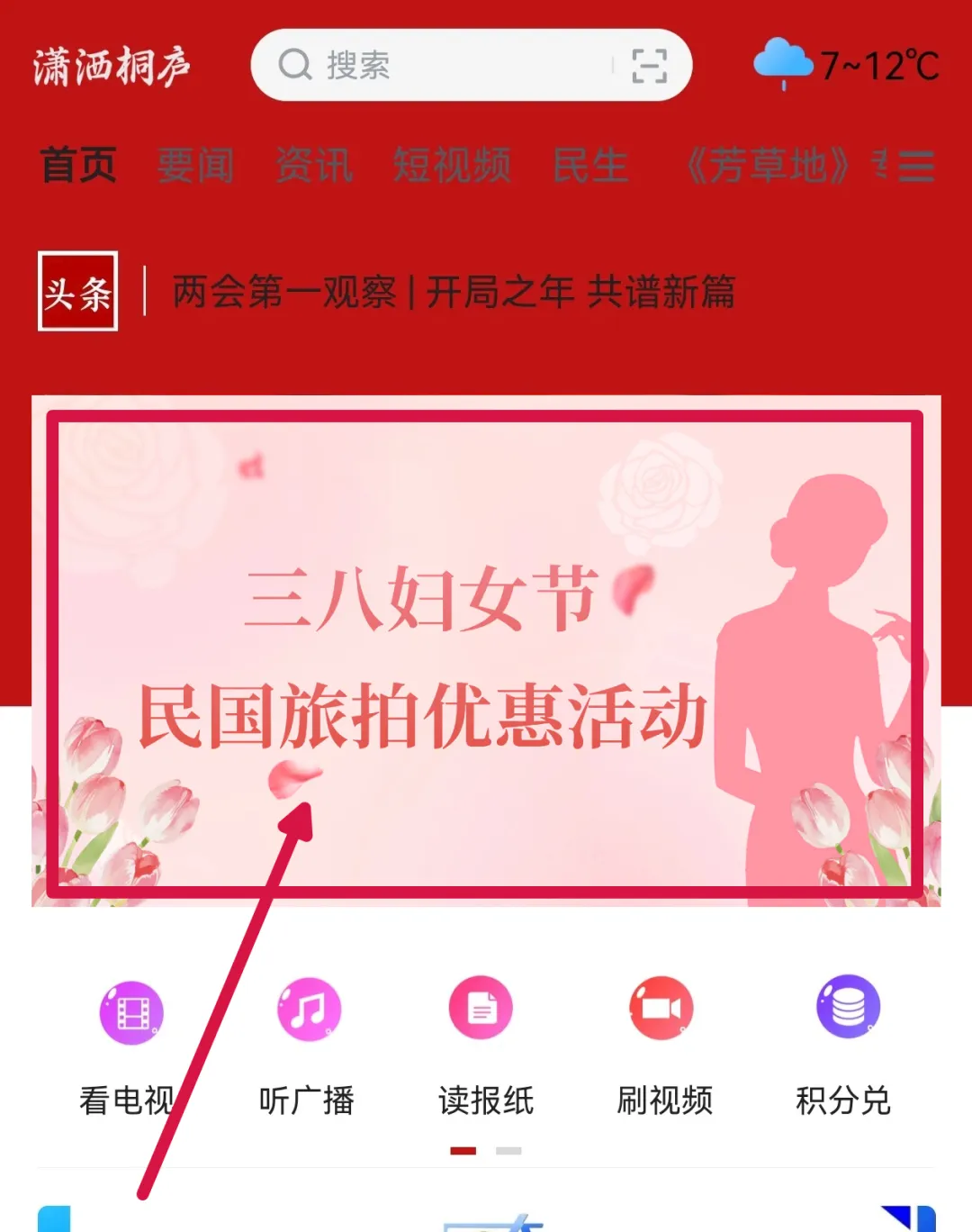 进入潇洒桐庐客户端首页,点击进入活动页面。