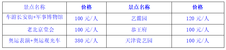 2、因北京旅游资源极其丰富,无法将所有景点包含在行程中,为了使您的行程更加丰富,您可以自愿选择参加自费项目,绝不强制消费.