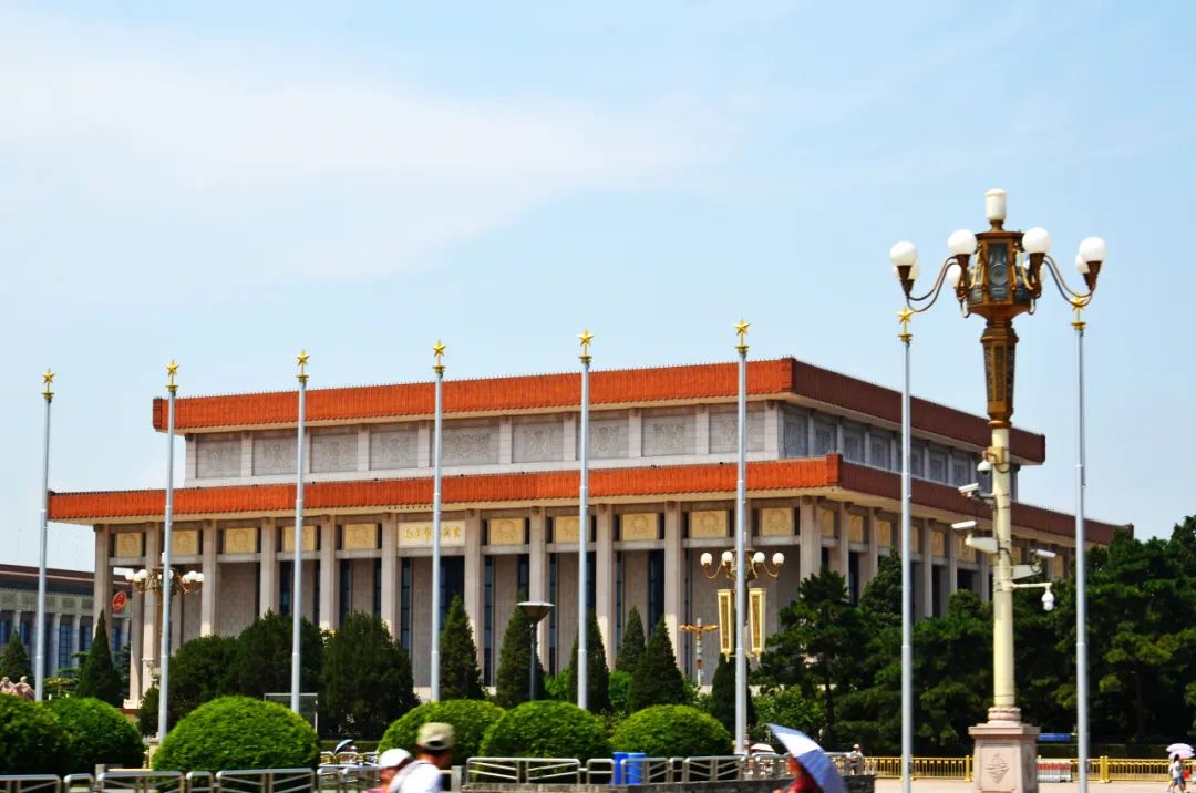 【毛主席纪念堂】-是为纪念开国领袖毛泽东而建造的,位于天安门广场, 人民英雄纪念碑南面,坐落在原中华门旧址,1976年11月24日按照中国共产党中央委员会的决议,毛主席纪念堂奠基仪式在天安门广场举行(如约不上毛纪则参观外景)。
