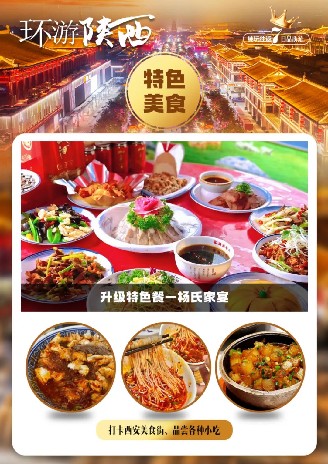 ★升级特色餐—杨氏家宴,打卡西安当地美食街、品尝各种小吃。