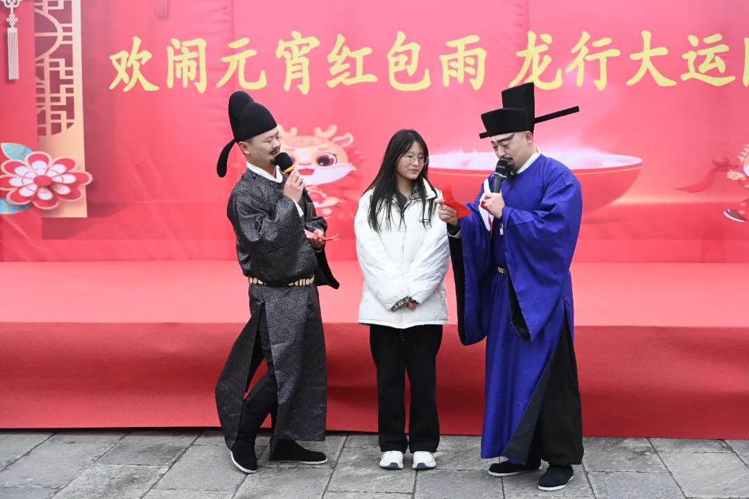 正月十五闹元宵。在河东池盐文化博览园中禁门北广场,前有汉服小姐姐发放灯谜,后有精彩文艺汇演中猜灯谜环节,大家通过猜灯谜,抽奖品,让参与者们感受到了浓厚的文化氛围和节日惊喜,现场气氛热烈而欢快。