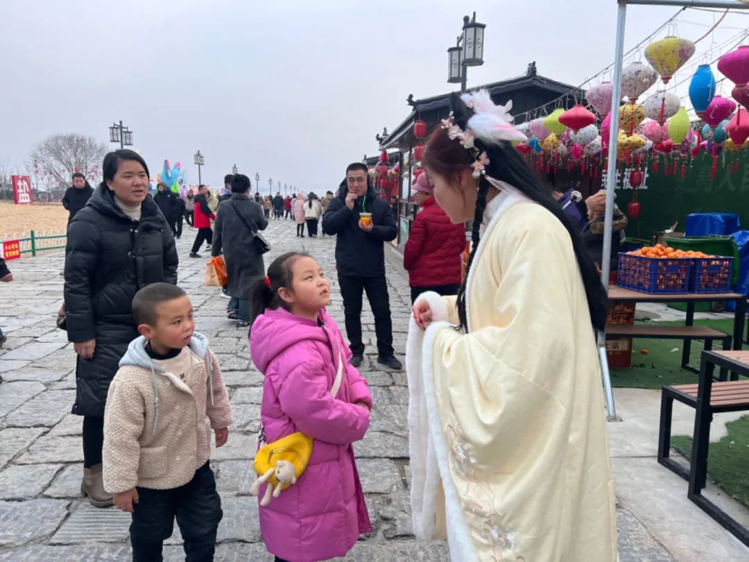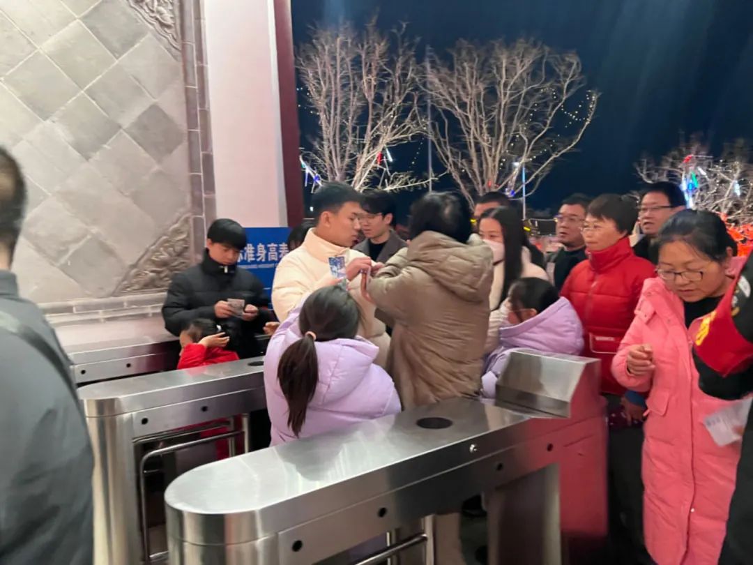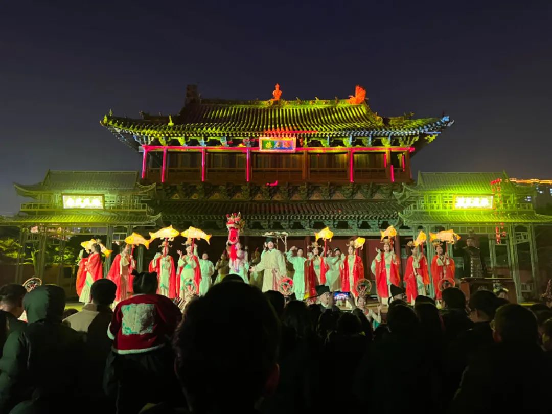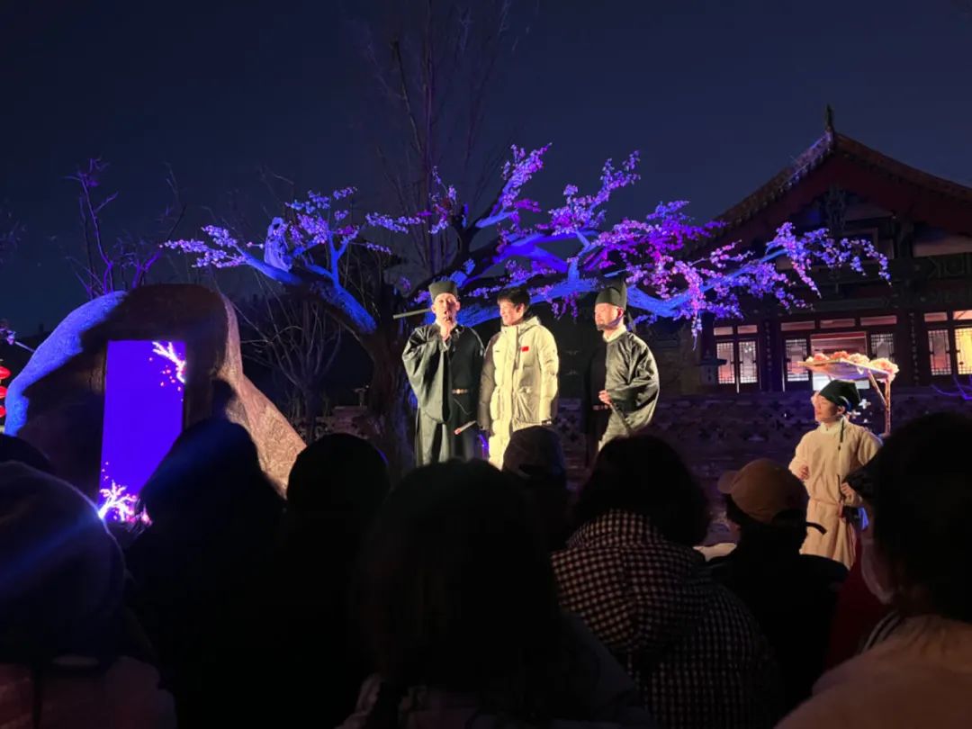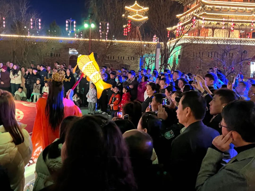 正月十五,是大型沉浸式游园演出《宋韵·南风歌》春节演出最后一天,在这元宵佳节之际,游客们抱着期待的心情早早排队入场,在行进的过程中“零距离”感受宋代运城地区文化的典雅和繁荣,通过现代观众和历史人物的对话和交集,把光影艺术的变幻和戏剧表演的魅力结合在一起,让演员和观众一起体验空间的变幻、身在其中的沉浸式魅力。