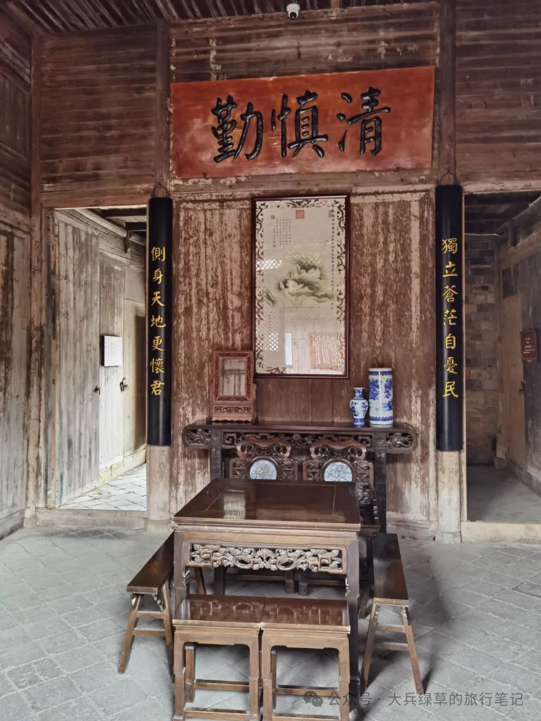 三堂是知县办公及日常生活之所,有天井院落和东、西厢房。正厅虽然不大,但墙上挂着的“勤慎清”牌匾,警戒为官者要清正廉洁,谨慎处事,勤政为民。