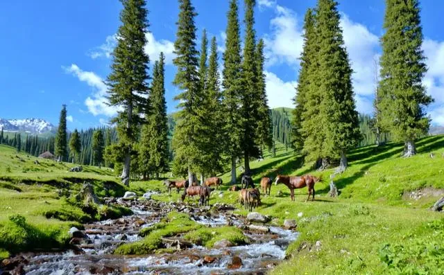 琼库什台的魅力不在“景区感”,而在那种像住进山谷日常的真实。村子背后是起伏的草坡,木栅栏、牛羊、溪水都不摆拍,随便一走就能听见风吹过白桦叶的沙沙声。这里的隐藏玩法是从村里挑一段轻徒步,别硬刚长线,找当地人问一条“能看到河湾和林子的路”,走到一处高点停下,带一块馕和一瓶酸奶,坐着发呆也算行程。住宿尽量提前订,旺季房源紧,别指望临时捡漏;住木屋要问清楚热水和供暖,山里夜里降温快,别让“浪漫”把你冻醒。