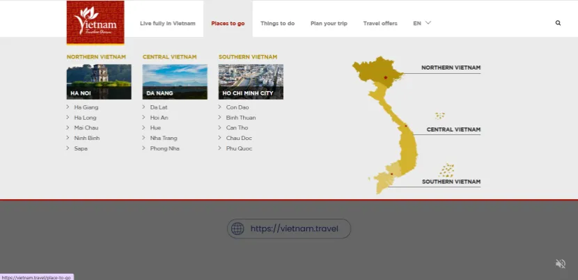 新闻详情:根据 2025年第四季度 的数据,越南国家旅游局官方国际网站vietnam.travel在东南亚地区国家旅游官网的流量排名跃升至第二。网站新增了手工艺地图、世界遗产VR游览、AI行程助手等功能,支持12种语言,其社媒矩阵全球视频播放量超50亿次。