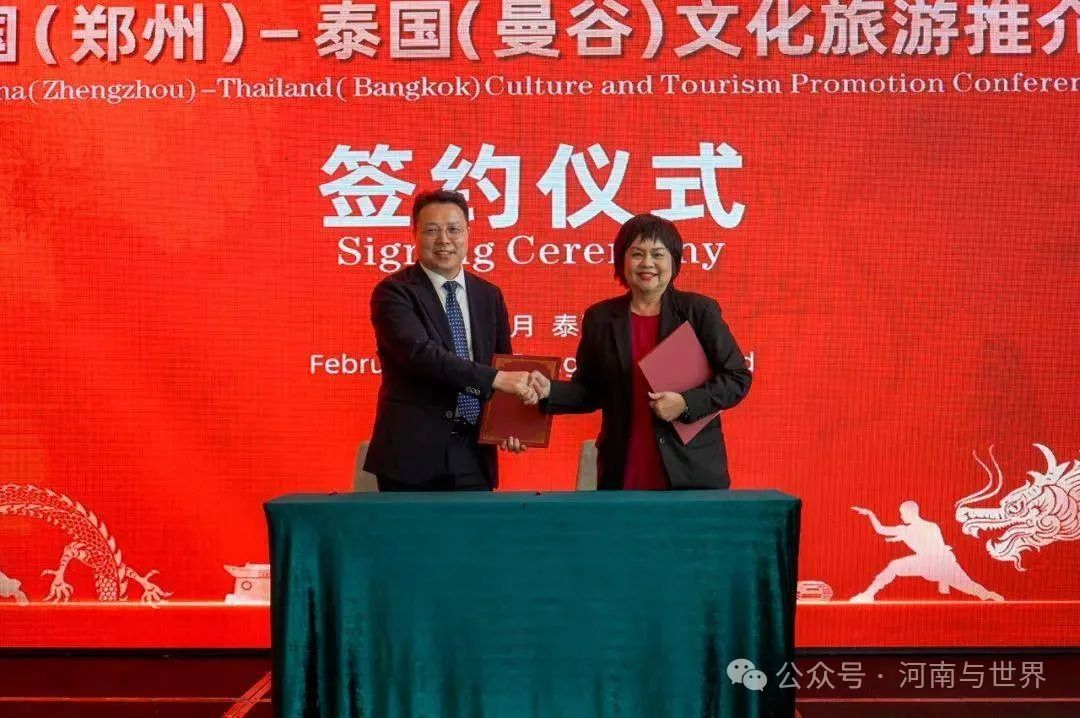 2月7日上午,第三场“2024中国(郑州)文化旅游推介会”在泰国曼谷隆重举行,泰国旅行社协会副会长WACHIRA WICHAIWATANA女士、黄雀航空COO Natthakorn Chunhacha先生、泰国旅游观光协会理事NICHAPA ROJANASOONTHON、泰国河南总商会副秘书长张衡,泰国河南商会副秘书长谢飞、泰越捷航空泰国站联系人ANGELA YAN、泰国知名旅行社企业、文旅企业代表等一百余人应邀参会。会上,郑州文旅体集团与泰国旅行社协会、泰国黄雀航空公司分别达成了战略合作,在与会嘉宾的见证下,三方领导上台分别签订了战略合作协议。