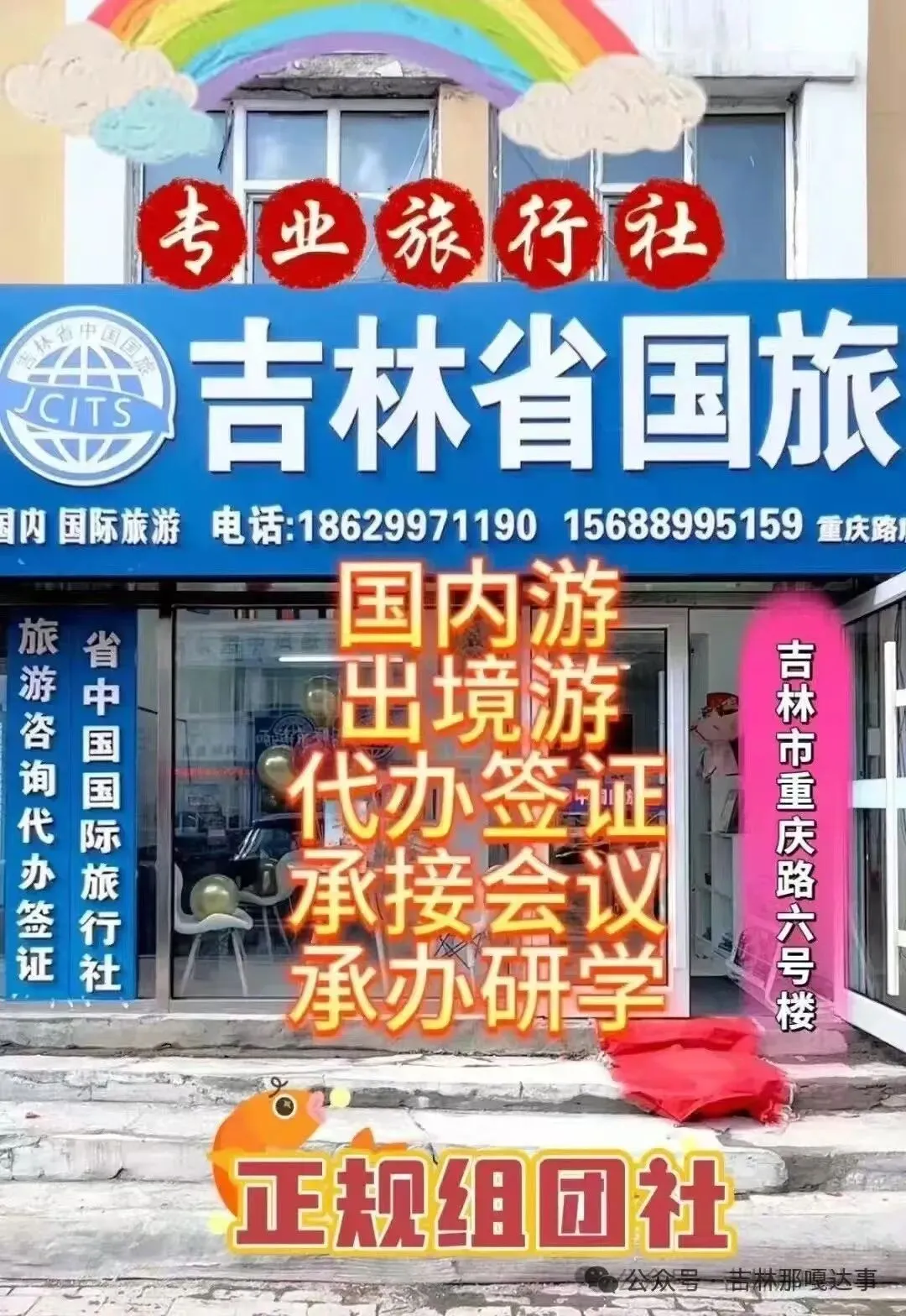 吉林市专业旅行社推荐:经营项目:国内旅游,出境旅游、私人定制旅游、承接各种会议、研学旅行、代办各国签证,商务考察、机票代订、旅游咨询等业务… 吉林省中国国际旅行社吉林市重庆路门店地址:吉林市重庆路6号楼 旅游热线电话:15688995159 18629971190