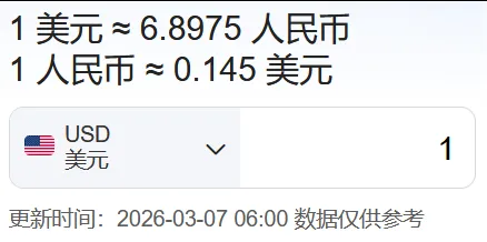 点击关注本账号,查看外贸英语考试和法律英语相关的内容资讯以及职场工作感悟! 今天是阳历3月7日,星期六,农历正月十九,距离阳历2027年1月1日还有299天。 下面开始今天的海外市场汇率播报,图片来源某度: 美国:1美元≈6.8975人民币