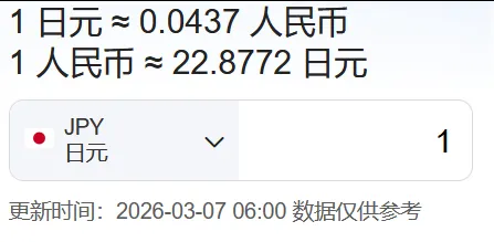 日本:1日元≈0.0437人民币