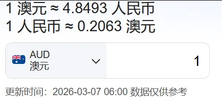 澳大利亚:1澳元≈4.8493人民币