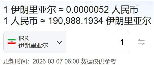 伊朗:1伊朗里亚尔≈0.0000052人民币,看清楚这是几个小数点,数了几遍总共6个0。