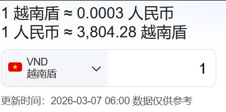 越南:1越南盾≈0.0003人民币