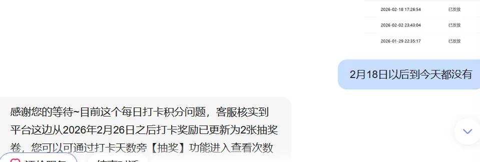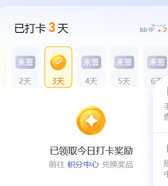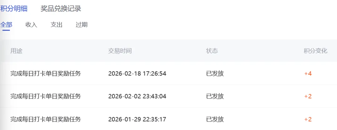 今天显示已打卡,奖励也已领取,可是积分中心就是没看到今天3月7日和前几天的积分奖励,什么原因呢?