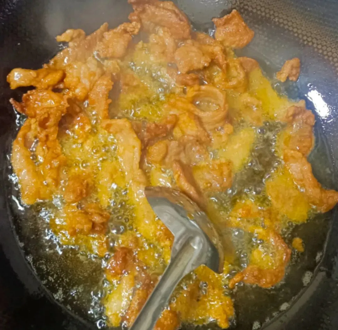 再炸一盘里脊肉,调一碗甜甜的糖醋汁,色泽鲜亮,口感软嫩。