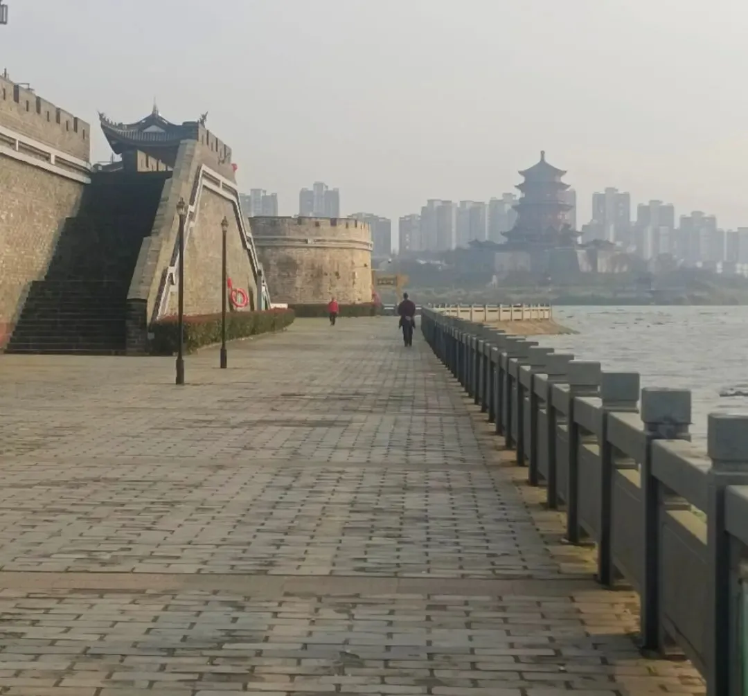 长长的城墙沿着江边延伸,一眼望不到尽头,古色古香的楼阁静静矗立,微风轻轻吹过,带着江水的湿润,也带着难得的松弛。