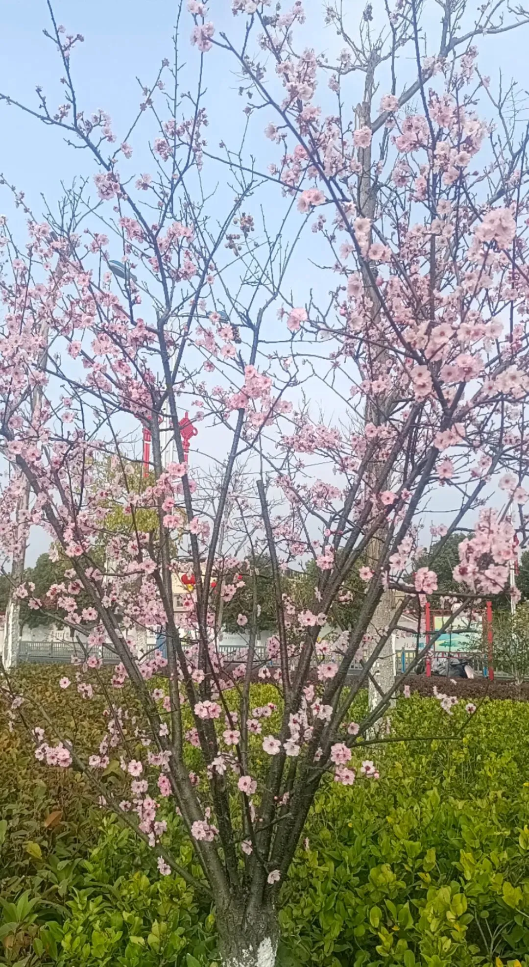 路边的花开得正盛,一树粉白,温柔又热烈。