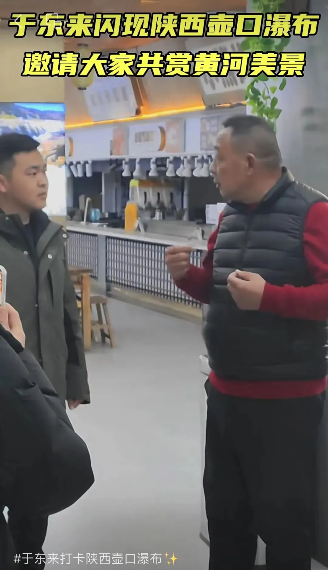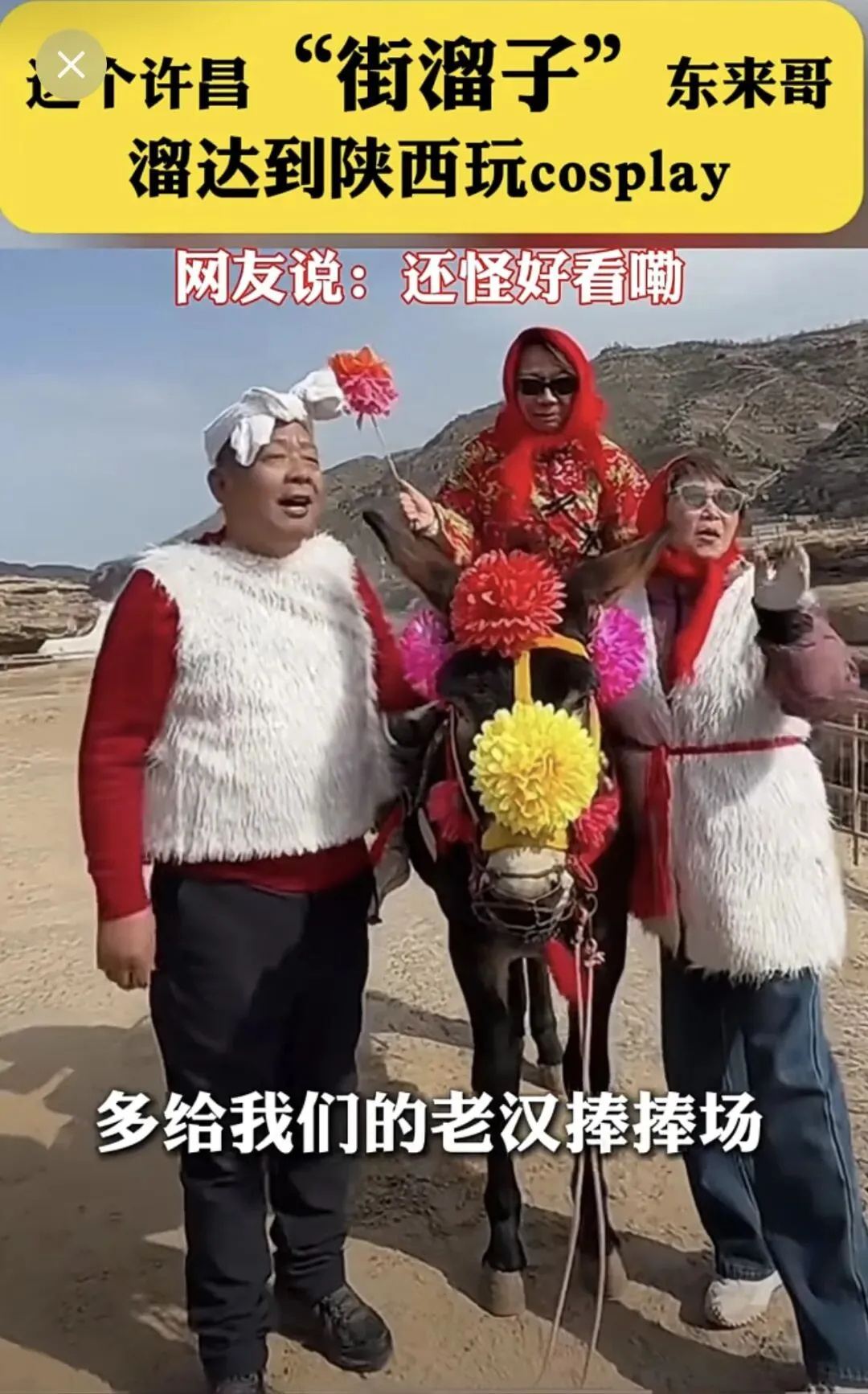 于东来宣布退休之后,就做一个开心果的老顽童,游山玩水,春节街头当摊贩卖甘蔗,过了元宵节于东来开启他的旅行,带着老伴来到陕延安壶口瀑布旅游,扮演老汉叼着烟斗牵驴让游客拍照,又扮演村花妹骑驴,于东来主打就一个开心,他现场呼吁游客支持牵驴老汉多拍照,让老汉多挣点钱,传递幸福美好生活。
