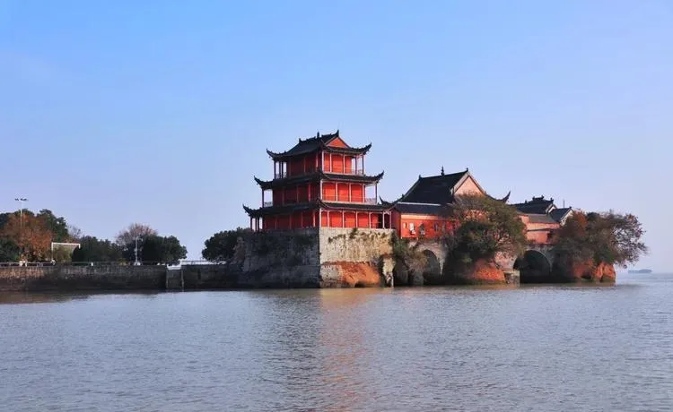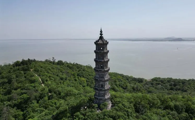 这个岛不大,南北长不到两公里,东西宽也就几百米,但麻雀虽小五脏俱全这话用在这里不太准确,因为姥山岛从来没想过要"俱全",它只留下了最本质的东西,一座文峰塔立在岛的制高点,建于明代,七层八角,塔身上的砖雕经过几百年风吹雨打还在,你爬到塔顶往下看,整个巢湖就铺在眼前,这时候你才发现这座塔的位置选得有多精准,它不是为了让人远眺风景,是为了让人理解自己在这片水域里的位置,你站得越高,越能感觉到自己的渺小,但这种渺小不让人沮丧,反而让人踏实,因为你终于知道了自己该在哪。