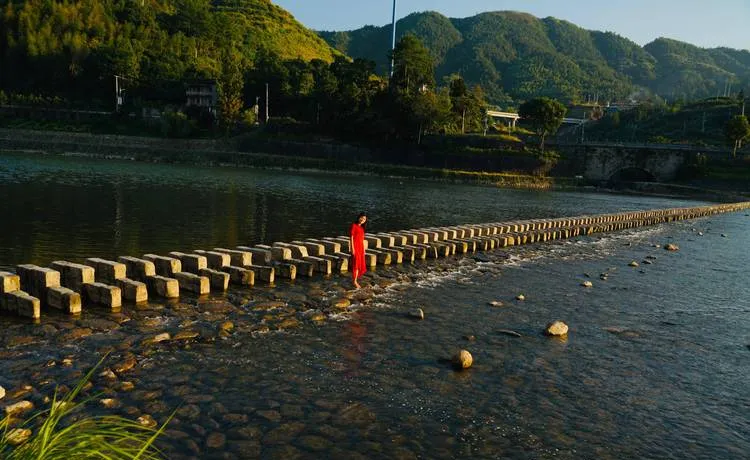 而且碇步还有一个特点,就是它强制你慢下来,因为你得一步一步踩,踩错了就掉水里,所以你不可能走快,你得看着脚下,感受每块石头的位置,调整你的步幅和节奏,这个过程其实是在让你和河流产生连接,你不是在征服它,是在适应它,这种关系在现在这个时代很少见了,因为我们习惯了用技术去改造自然,但碇步的逻辑不是改造,是顺应。
