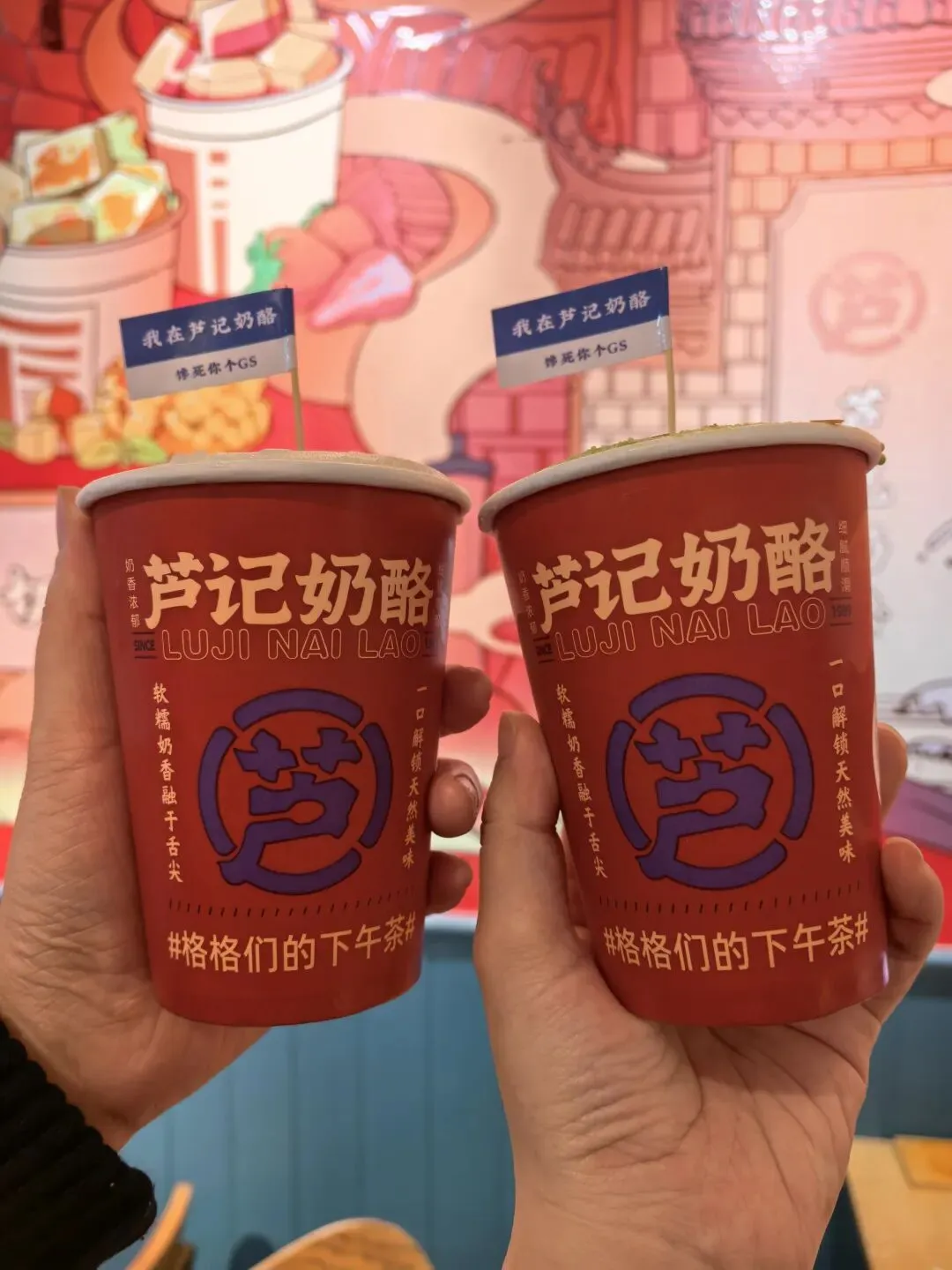 吃完晚饭,我们就骑共享电车去了西大街(夜市),已经很晚了,但还是很热闹。我们闲逛了一家全场五元店,买了个墨镜🕶,为明天拍照做准备,然后找到了卢记奶酪,尝了尝。要的小杯,是纸杯,不是透明的。点了一杯原味+小料+草莓🍓,还有一杯抹茶+小料+薄荷,原味和抹茶的好吃。凉凉的,我俩就在店里吃完才往回走。