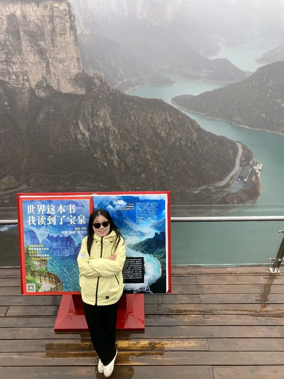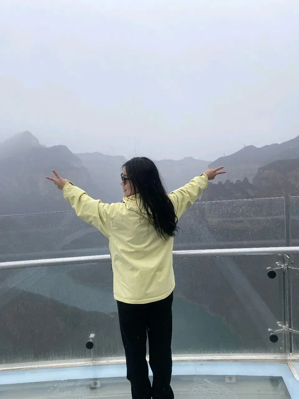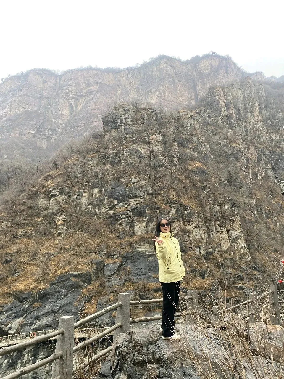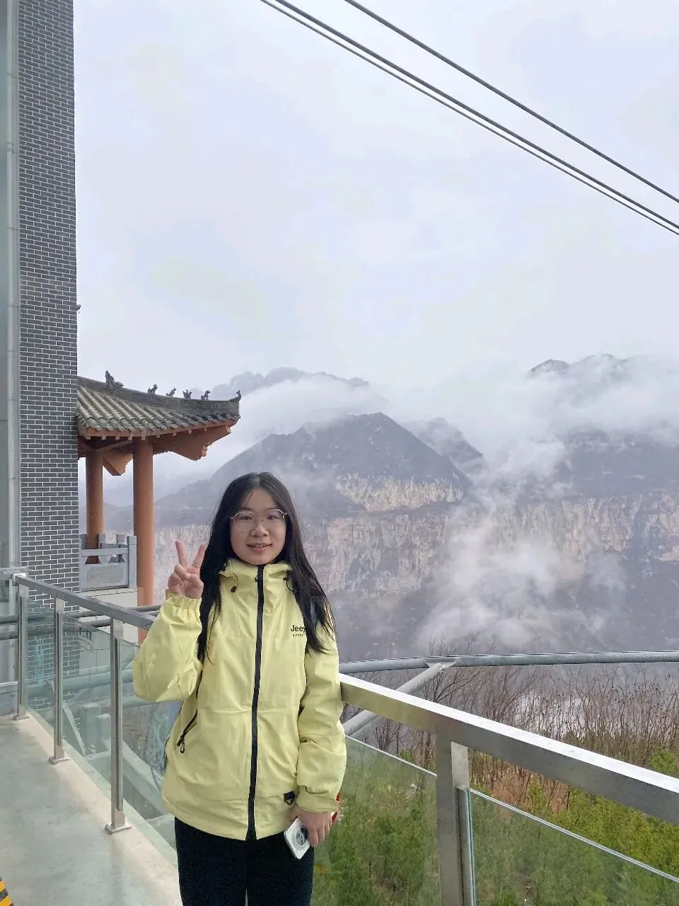第二天一大早,差不多六点,我俩就被闹钟⏰叫起来,要洗漱收拾去赶旅游团的车了,上车点是胖东来附近。收拾的中途,有人在群里发消息问,外面下雨了,游玩还正常进行吗。我们这才发现外面下雨了,导游说车已经出发,按照购买原则,如果不去的话,就要损失80%的费用,然后又想着来都来了,既然能够正常出发,那就是可以正常爬山的,于是我俩就出门去楼下超市买了伞和雨衣,赶往上车点。