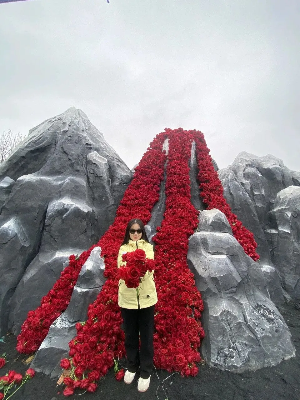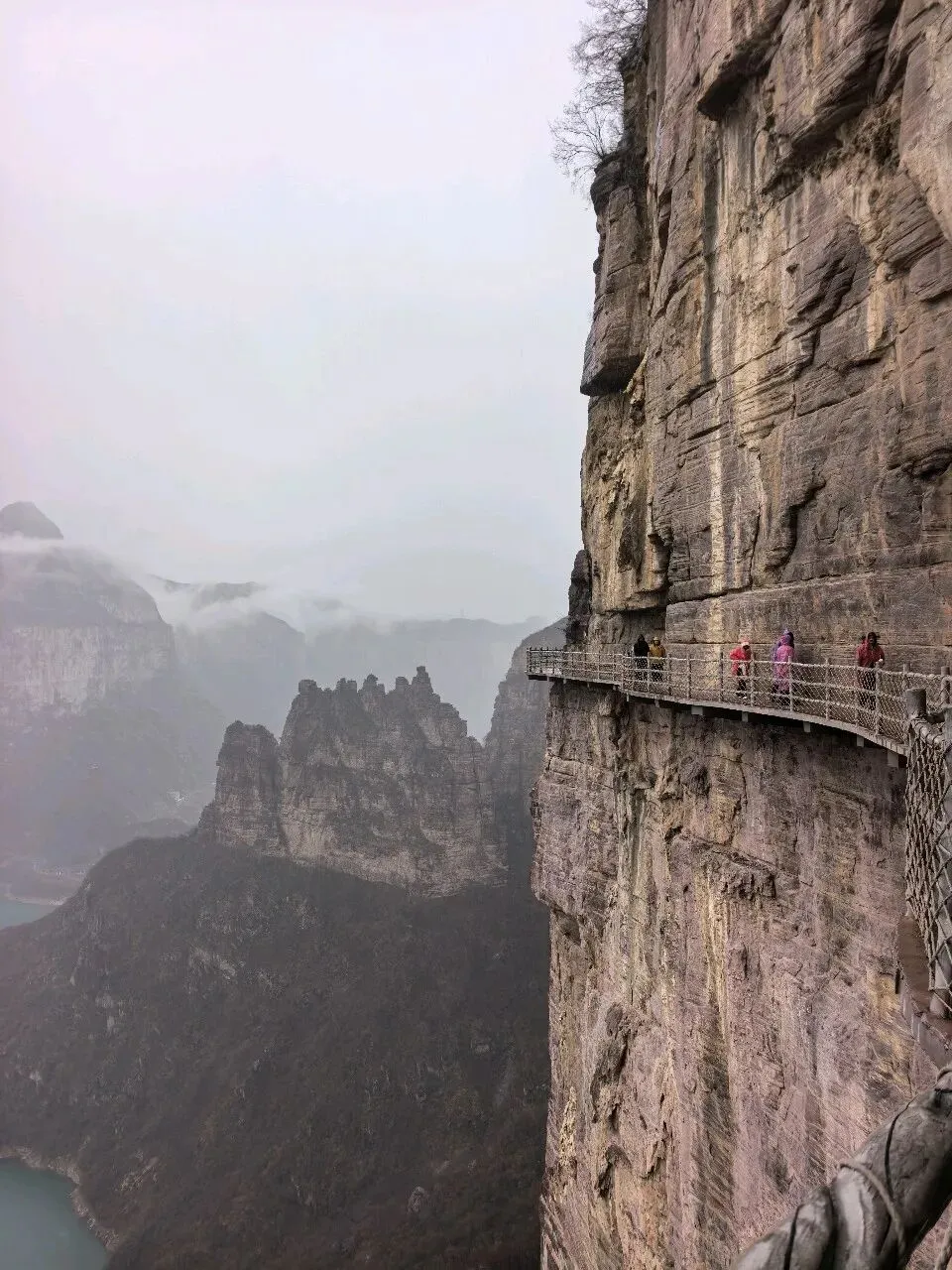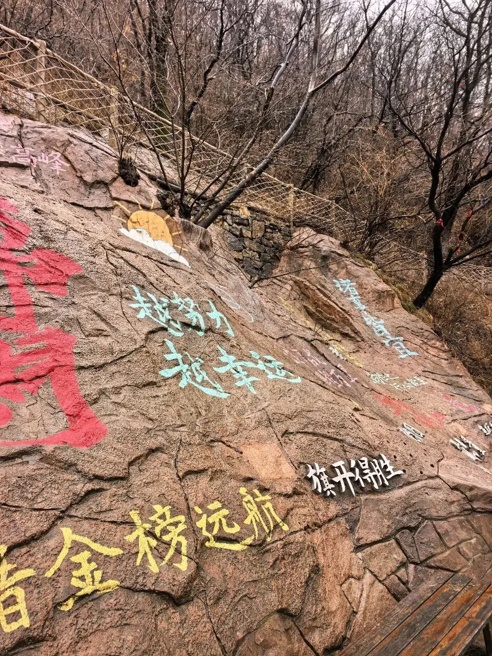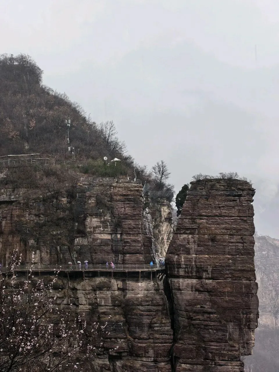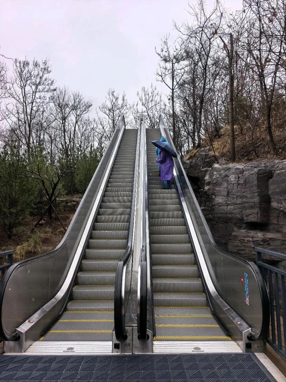 第二天一大早,差不多六点,我俩就被闹钟⏰叫起来,要洗漱收拾去赶旅游团的车了,上车点是胖东来附近。收拾的中途,有人在群里发消息问,外面下雨了,游玩还正常进行吗。我们这才发现外面下雨了,导游说车已经出发,按照购买原则,如果不去的话,就要损失80%的费用,然后又想着来都来了,既然能够正常出发,那就是可以正常爬山的,于是我俩就出门去楼下超市买了伞和雨衣,赶往上车点。