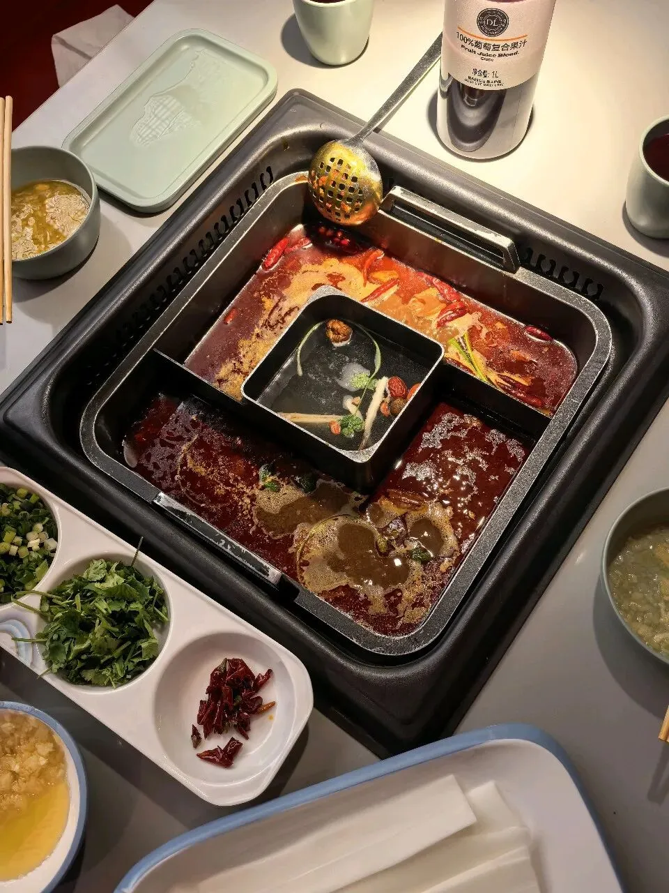 葡萄汁很好喝,我俩一会儿就把一瓶喝到底了。红焖羊肉我俩没有吃完,我吃着有些塞牙,所以牙齿有些难受,就吃的比较慢。中间的菌菇汤很鲜美,倒是喝了不少。