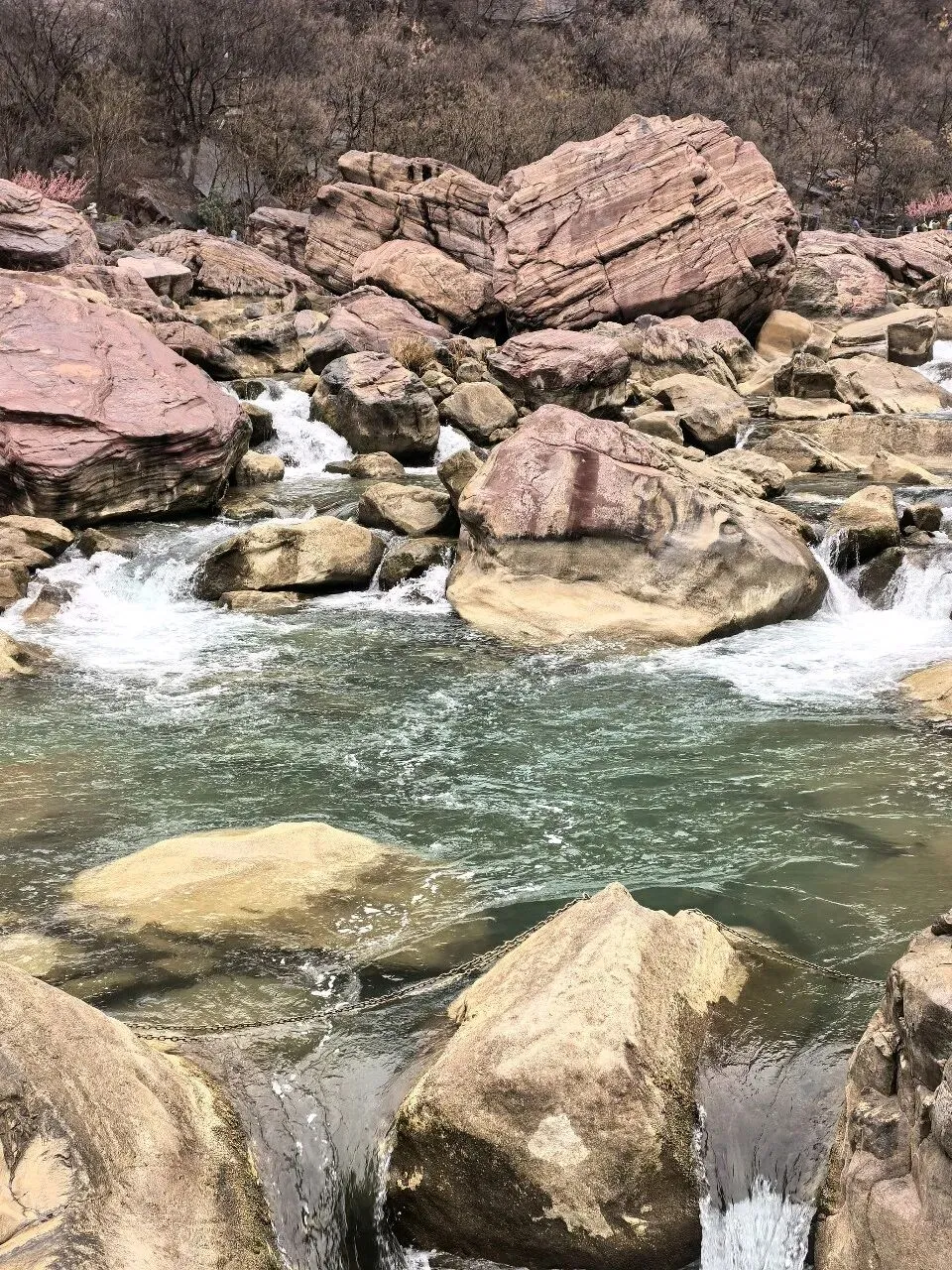 我们跟随导游,从进口进去,买了船票,坐船可以减少一段走的路程,然后到达一座桥下,开始徒步。