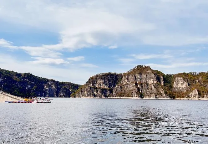 白山湖风景区跟之前说的仁义风景区是同一片湖,但角度不一样,看到的东西也不一样,仁义风景区看的是静,白山湖风景区看的是阔,这里的湖面更开阔,视野更宽,站在观景台上往下看,湖水一直延伸到天边,分不清哪里是水哪里是天,这种感觉很神奇,明明是内陆的湖,但站在这儿却有种面朝大海的错觉。