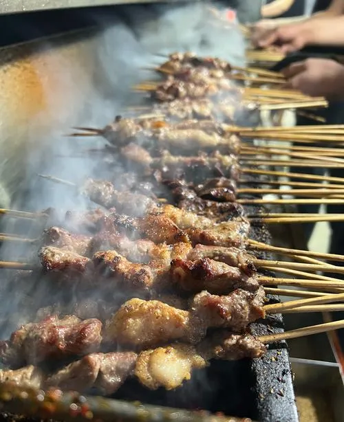 很多人说和田夜市有烟火气,但这个烟火气不是指人多热闹,不是指摊位密集,而是指一种从容,一种不着急的从容。你站在夜市里,会看到烤肉摊的师傅一串一串慢慢翻,翻得很均匀,每一串都烤到表面微微焦黄,油脂滴在炭火上滋滋作响,然后撒上孜然和辣椒面,动作不快也不慢,就是那种"我知道这一串要烤多久"的节奏,这种节奏在其他地方你很少看到,因为大多数夜市的摊主都在赶时间,赶着翻台,赶着多卖几串,但和田的摊主不是,和田的摊主知道,你来这不是为了快,你来这是为了吃好。