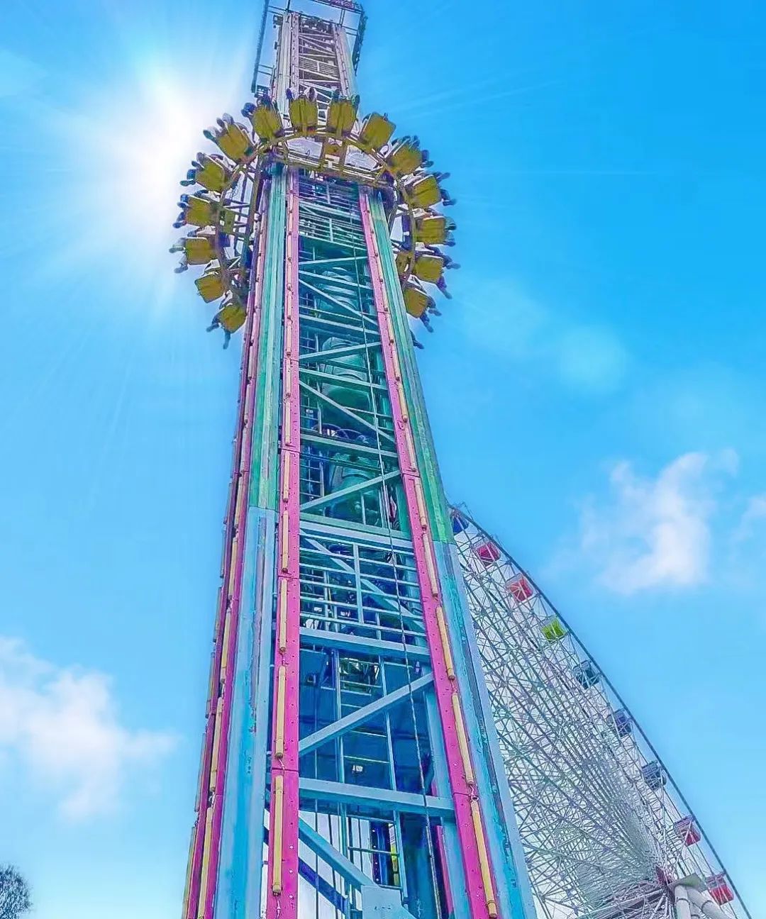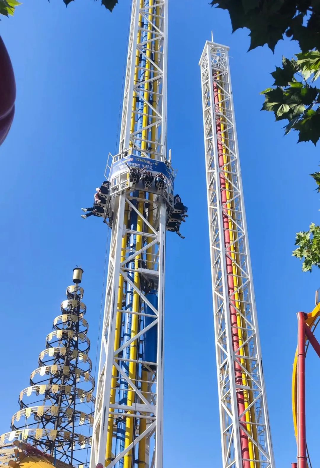 起初,机器仿佛一直温顺的小猫,慢慢的将你升高,想你把你举上天,到达最高点,它就本性暴露了,小猫咪变成了一只恶狠狠的大老虎,极速的下滑,游客们都不禁大声尖叫。