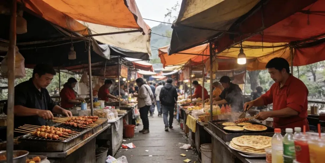 比人工假景更让人难受的,是景区里乱糟糟的氛围。到处都是摆地摊的,小吃摊、小商品摊一个挨一个,吆喝声、吵闹声不断,整个景区像个集市,又吵又乱。