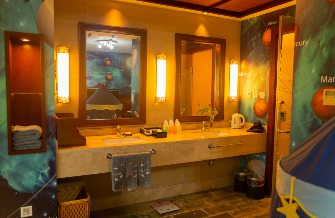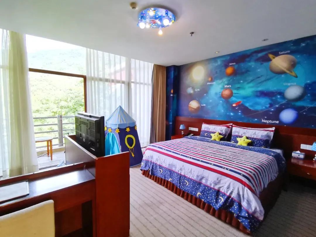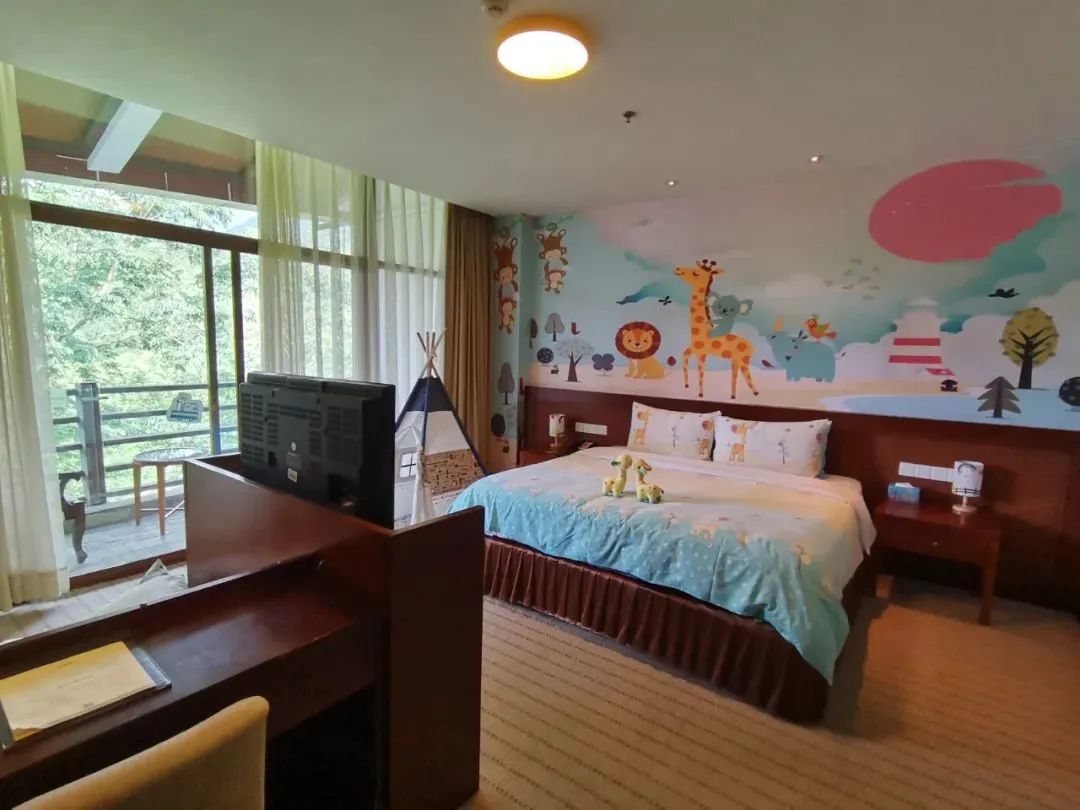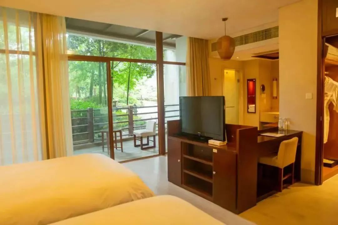 别墅房间干净整洁,设施完善,自带落地窗、小阳台,山间美景在房间就能一览无余,安静的室外环境,给您一个好眠的夜晚~