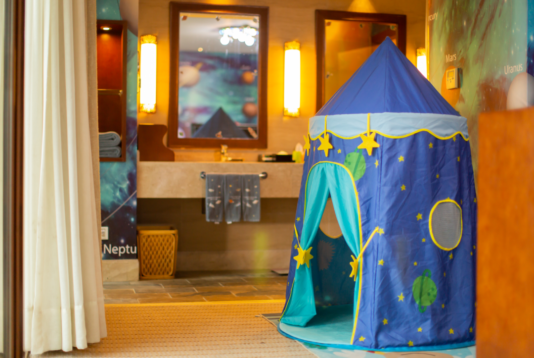 满山苍翠环拥着露台泡池区,温泉近处水气氤氲、花香阵阵、鸟语声声,就像繁华都市中的世外桃源,暂别喧嚣,躲进秘密森林~
