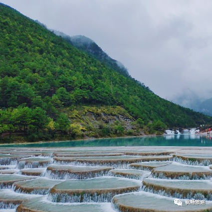 ▼之后游览静躺在山谷树林环抱中素有“小九寨”之称如梦幻影、疑是仙境的的【蓝月谷】。空谷清流间,水天一色的美景中,都市繁华喧嚣荡然已远,归真情致犹起。PS:(蓝月谷电瓶车小交通要自理60元/人)