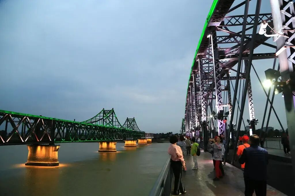 站在鸭绿江“断桥”桥头,可以清楚地看到保留至今的被美国军用飞机轰炸后钢梁扭曲、折弯的战争痕迹,以及钢梁上的累累弹孔,可以想象到当年硝烟弥漫的战斗场景。