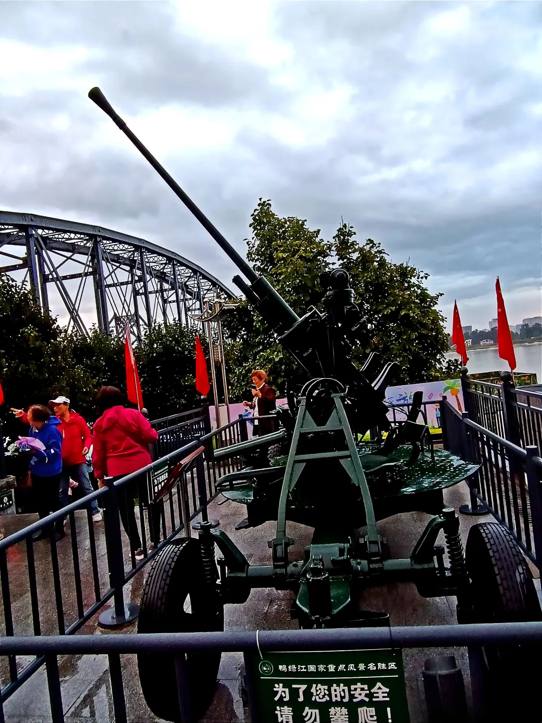 对面的一侧只剩下3个桥墩,万千弹痕犹在,犹如不朽的老人屹立在鸭绿江边,默默诠释着抗美援朝的岁月和中国人民志愿军的丰功伟绩。
