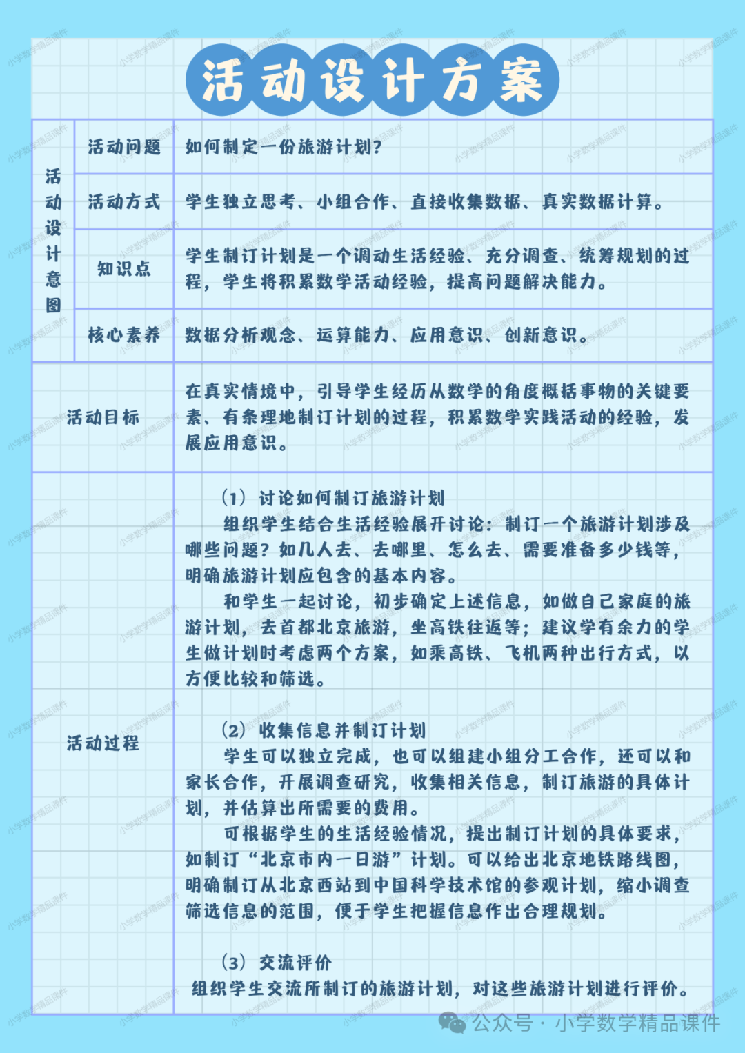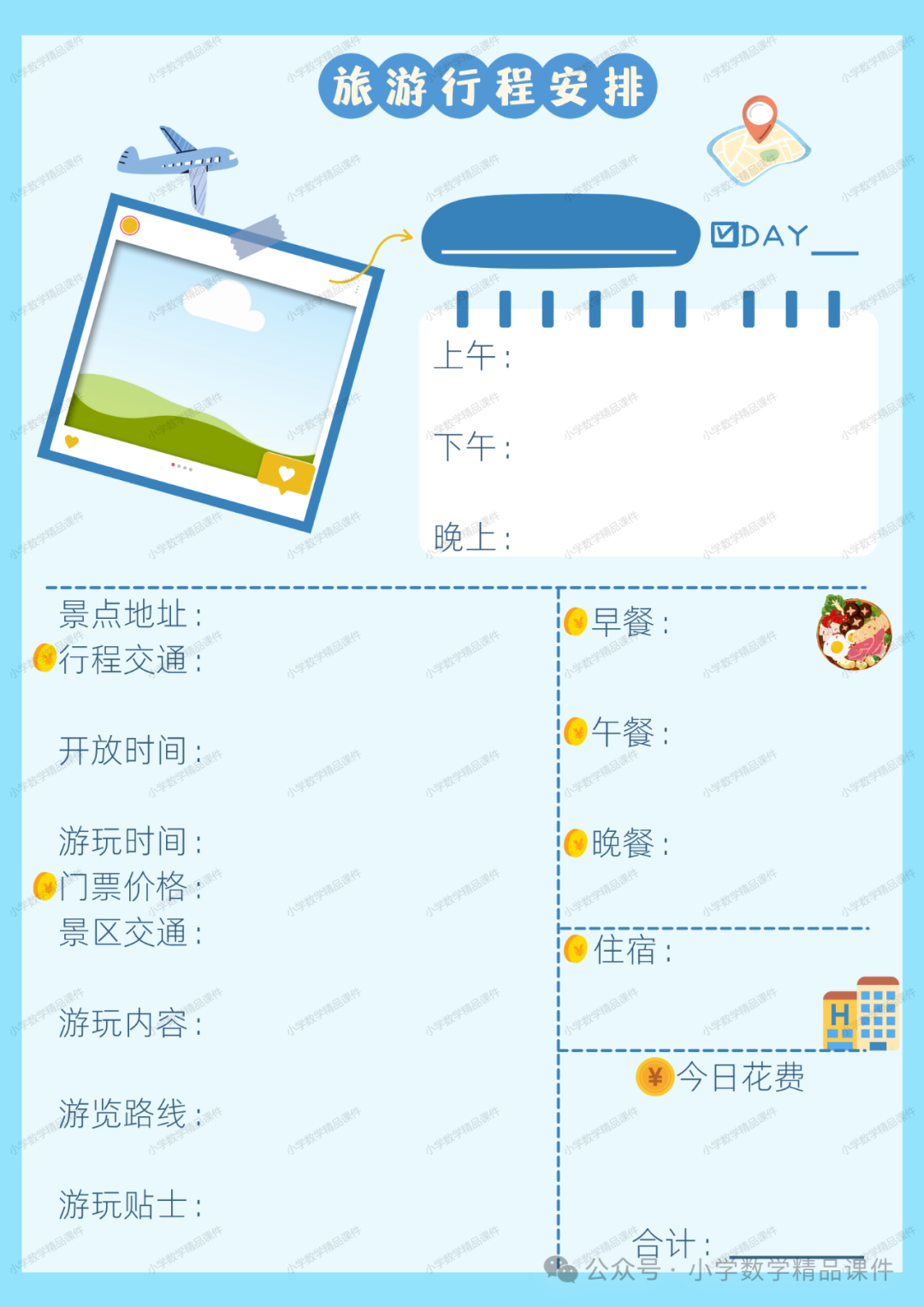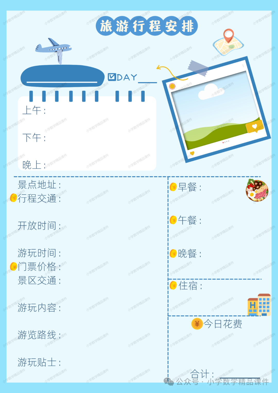 您现在的位置是:首页 > 国内旅游目的推荐 > 正文 国内旅游目的推荐 NO.1809综合与实践主题活动《制定旅游计划》(活动课件+活动方案+课标解读) admin2024年02月26日 01:49:02国内旅游目的推荐112 领取方法见文末资 料 预 览活 动 设 计课 件 预 览 转载请说明来源于"旅荐网",部分内容转载自网络,如有侵权请联系qlwl@foxmail.com删除 本文地址:https://www.15386.cn/post/13754.html 上一篇 火车票时刻查询小技巧,为你的旅行省钱又省心! 下一篇 京京旅行【3.9-3.10】初级休闲|江西婺源探花(少许名额) 相关文章 香港3天2晚旅行攻略 资讯 | 清明节假期出游提示:做好行程规划 文明绿色出游 用英文逛中国:这个网站能直接规划行程 假期正当时!快收好这份蟠桃山游玩攻略! 清明假期别浪费!3个AI神器让旅游攻略10分钟搞定 近期堪舆行程安排 异乡好居新加坡2026直播季(附直播行程安排) 北京春季旅行攻略皇城春意,花开满城 游玩攻略已备好,速码出发,下一站桓台! 2026年行程计划(有更新) 发表评论 取消回复 评论列表 这篇文章还没有收到评论,赶紧来抢沙发吧~