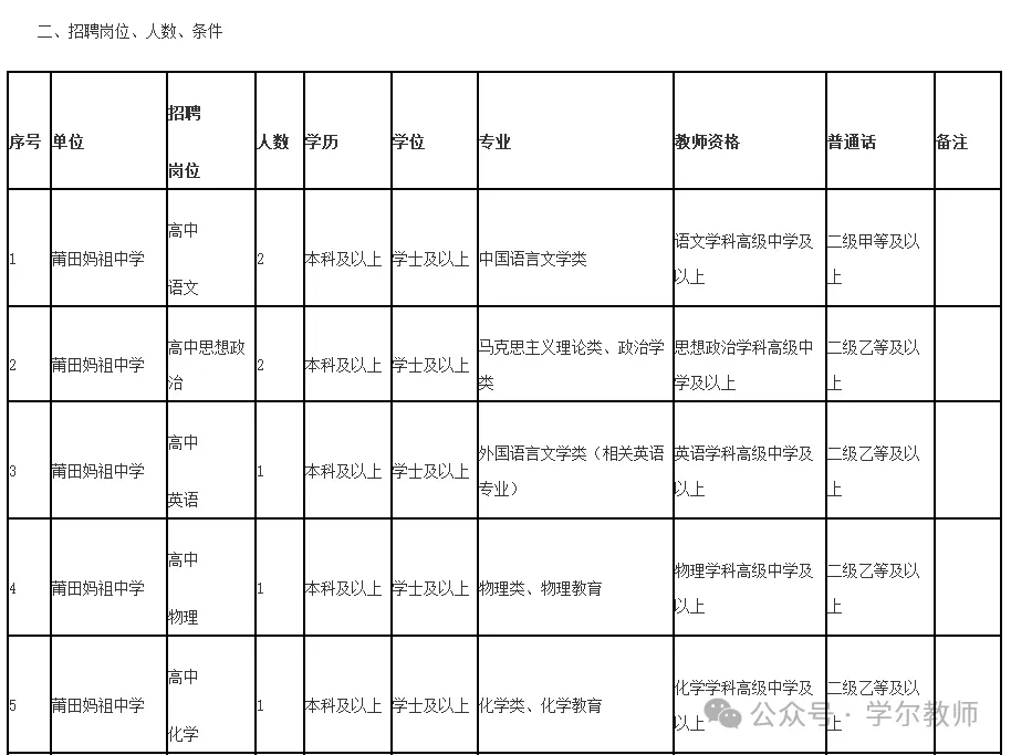 为确保湄洲管委会中小学校正常教学对师资的需要,根据省教育厅、省委编办、省财政厅、省人社厅《关于进一步做好全省中小学幼儿园教师补充工作的若干措施》(闽教规〔2022〕3号)和省教育厅、省人社厅《关于2026年全省中小学幼儿园教师公开招聘笔试服务工作的通知》(闽教师〔2026〕2号)文件精神,结合湄洲管委会学校实际情况,社会事业保障局将组织实施2026年湄洲管委会中小学校公开招聘新任教师工作,现将有关事项公告如下: