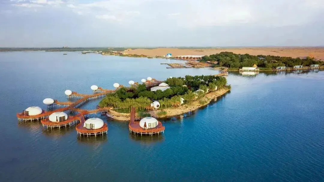 沙湖旅游区是“山水林田湖草沙”全生态体验和运动、休闲、康养为一体的旅游度假目的地。总面积80.10平方公里,22.52平方公里的沙漠与45平方公里的水域毗邻而居,构成了以秀美江南水乡与雄浑大漠风光为一体的独特景观。
