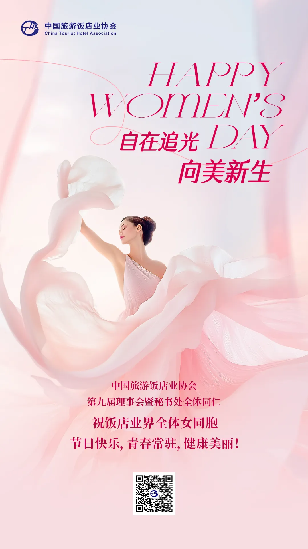 中国旅游饭店业协会第九届理事会暨秘书处全体同仁祝饭店业界全体女同胞节日快乐,青春常驻,健康美丽!