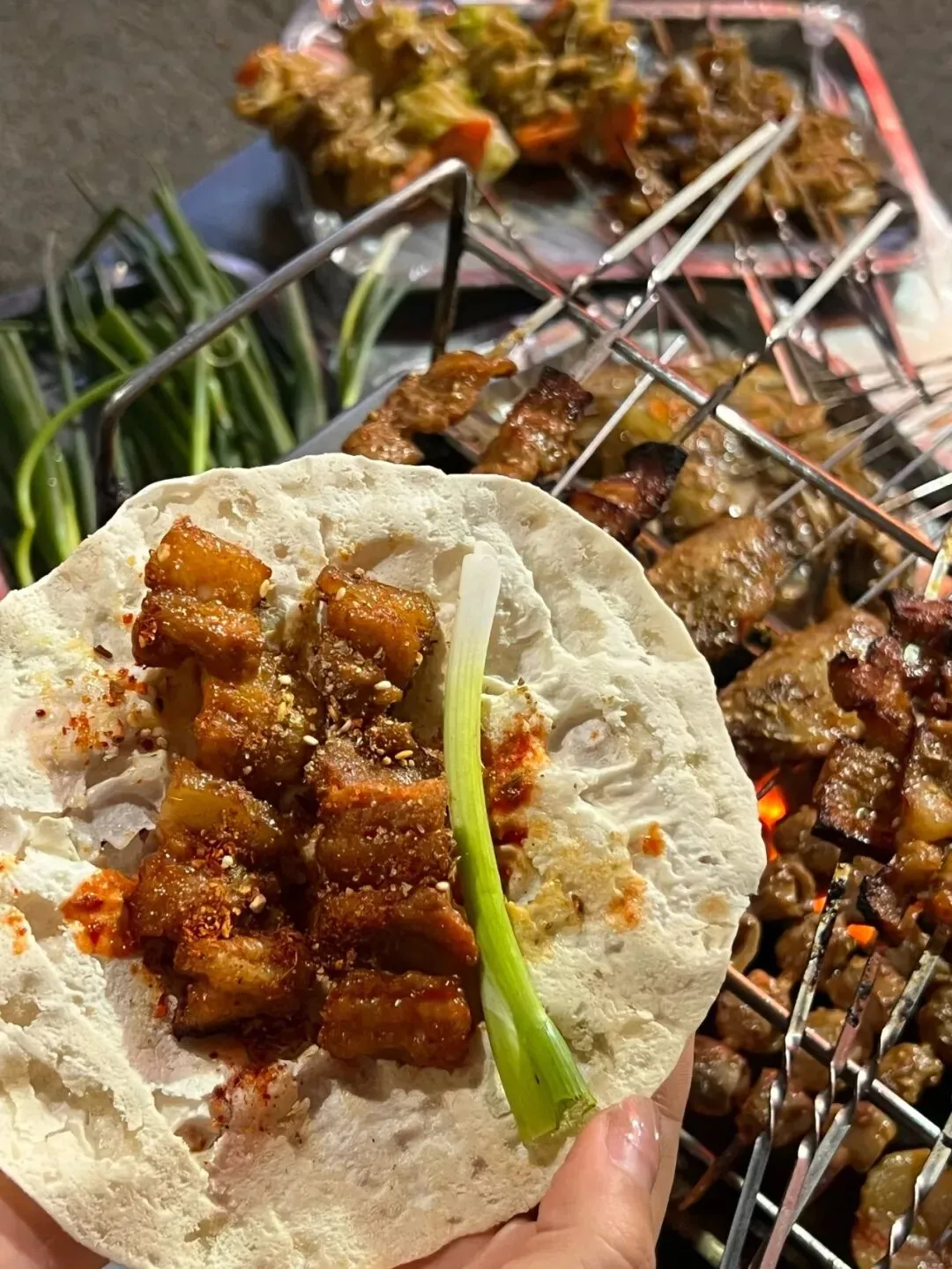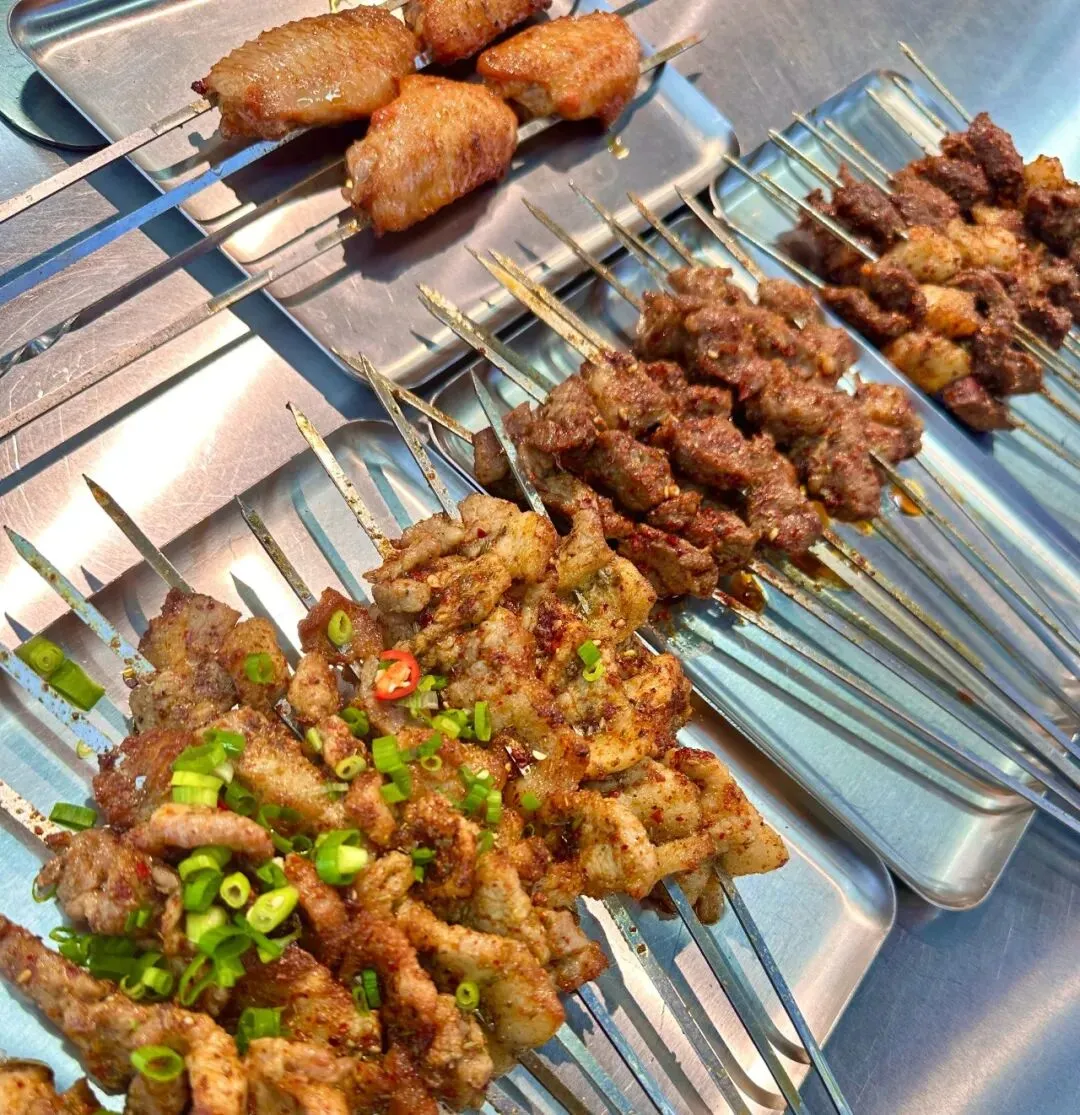 淄博烧烤:小饼卷起刚烤好的肉串,裹着焦香的油脂、爽脆的小葱、咸甜的蘸料,一口咬下,是肉香与面香的碰撞,是舌尖上炸开的烟火人间。来淄博,蹲在小马扎上,咬一口裹满烟火的卷饼,便读懂了这座城的江湖与深情。
