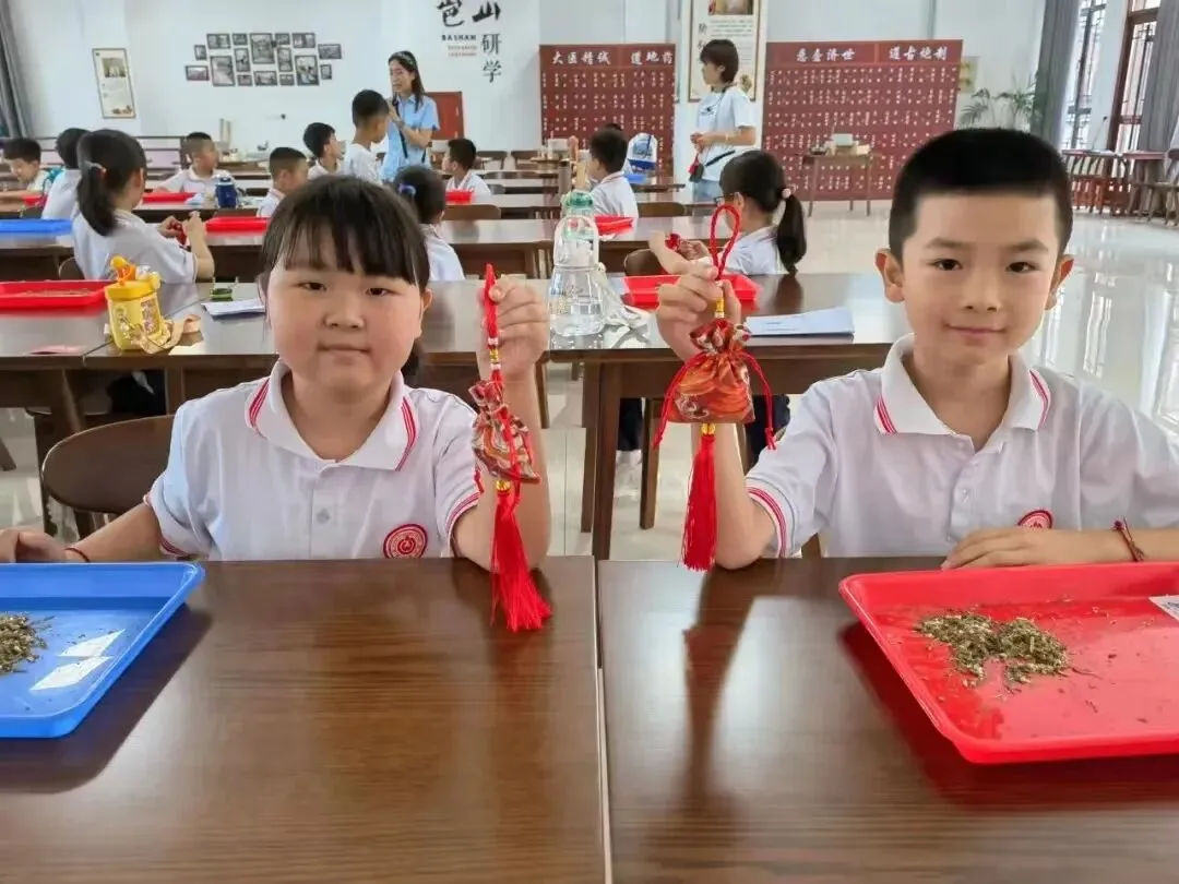 动手制作适合节气的中药香囊,让中医药知识与劳动教育相结合,培养坚持不懈。持之以恒的精神。
