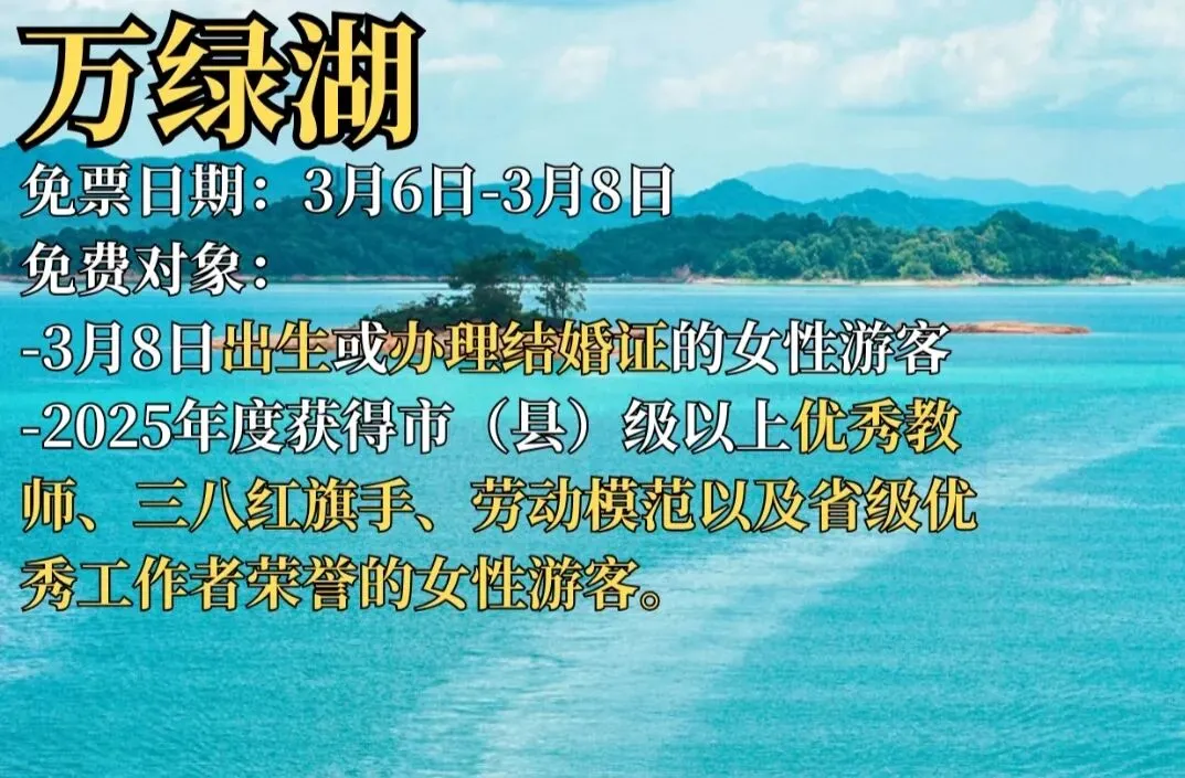 免票对象:3月8日出生/办结婚证的女性,或获市级以上荣誉的女性